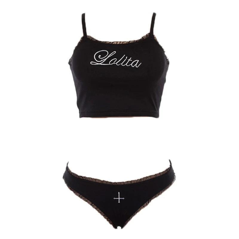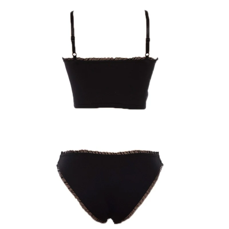 3 Pcs Underwear Lingerie Harajuku Sexy Bra Underpants Gathered Chest Lace Drilling Hollow Chain Seamless Slim Bandage Push Up | Женская