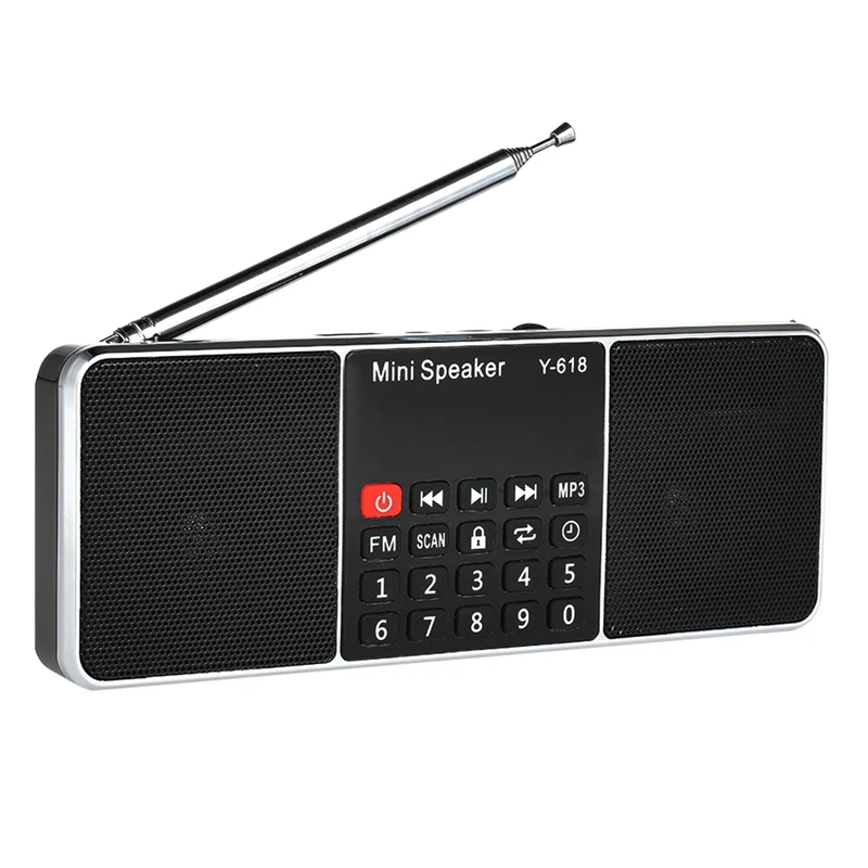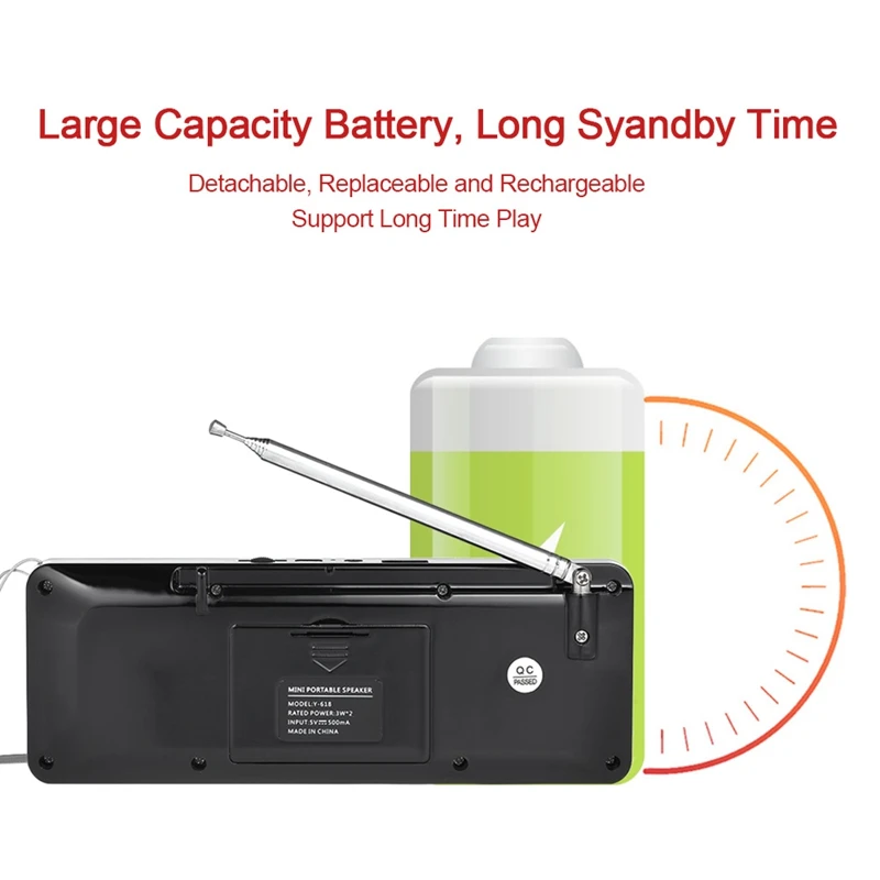 Y-618 мини fm-радио динамик специально разработан для людей, которые могут свободно слушать радио, погоду и новости дома. Громкий звук и высокое качество звука позволяют наслаждаться любимой музыкой в любое время и в любом месте. Очень классно и модно наслаждаться музыкой с этим многофункциональным цифровой Стереодинамик.