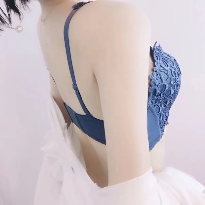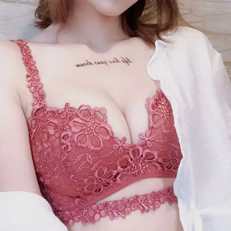 4. Без проволоки женский бюстгалтер пуш-ап, кружевная прострочка.