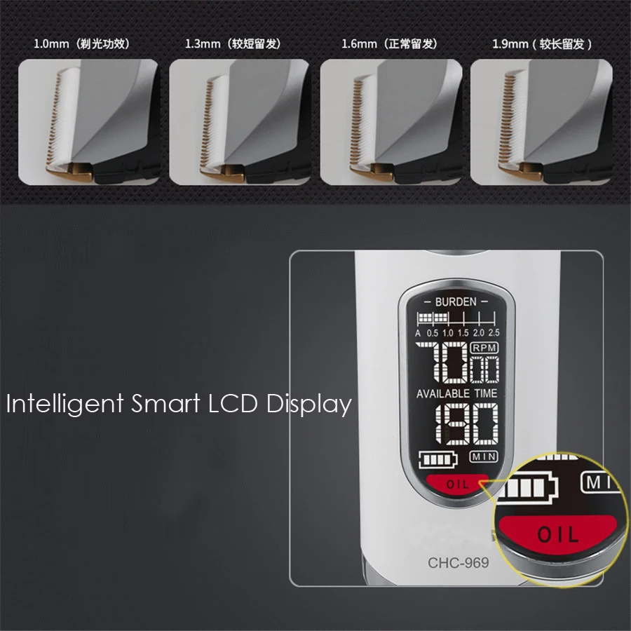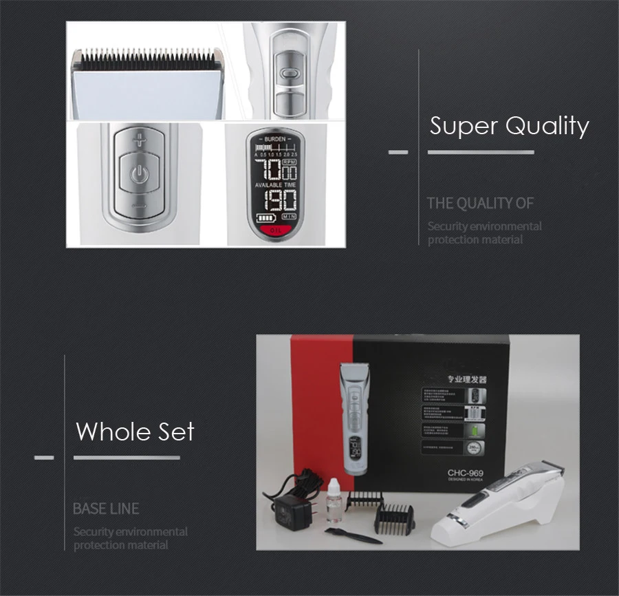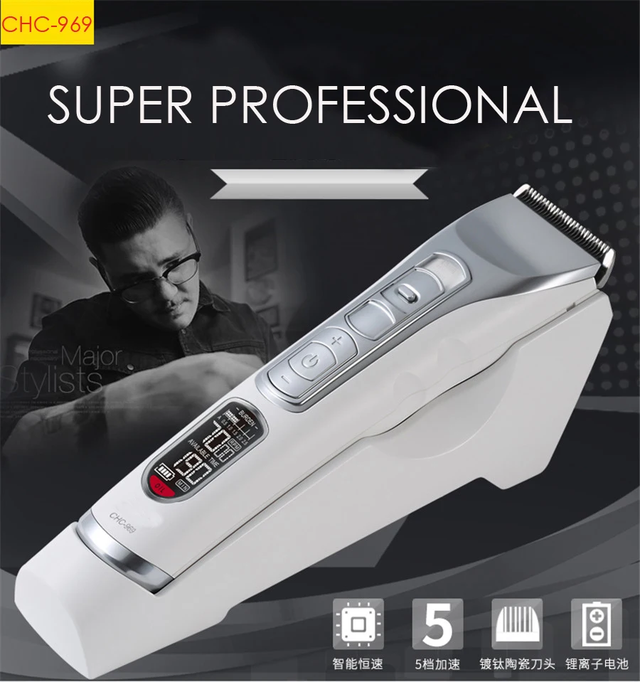 Машинка для стрижки волос мужская с титановым лезвием и ЖК-дисплеем, CHC-969