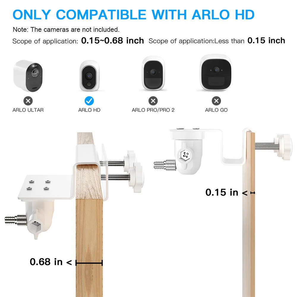 【Монтаж как вам нравится 】Вы можете установить камеру в любом случае вам нравится на заборе, желобе, крыше и т. Д. Он надежно удерживает ваши камеры в любом месте. (Большая карта корыта Сфера применения: 0,15-0.68in, малая карточка корыта Сфера применения: 0.15in)