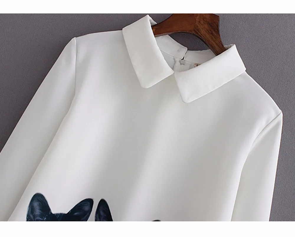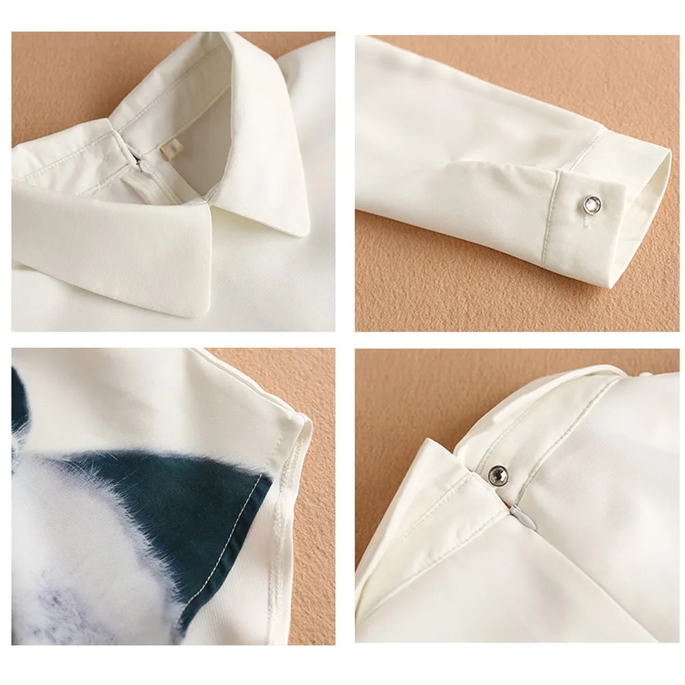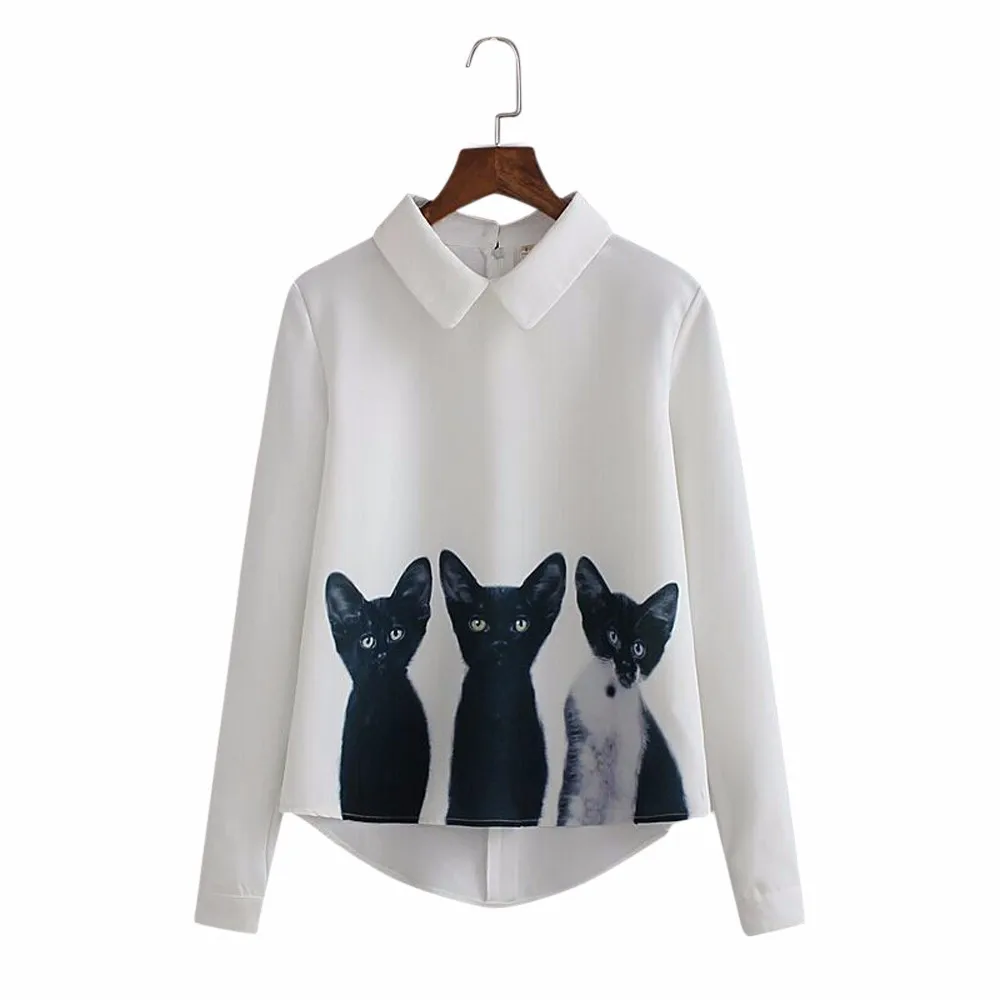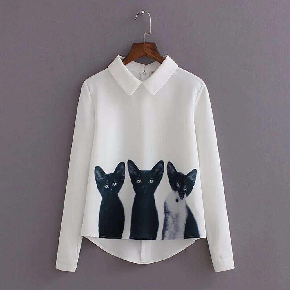 Женские свободные шифоновые топы с длинными рукавами с тремя котами, Повседневная блузка, рубашка