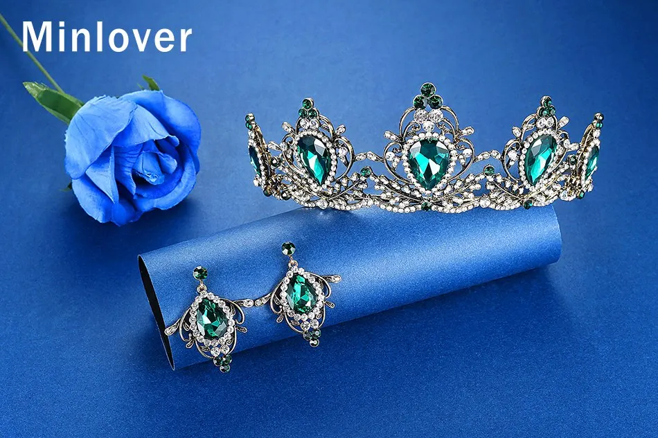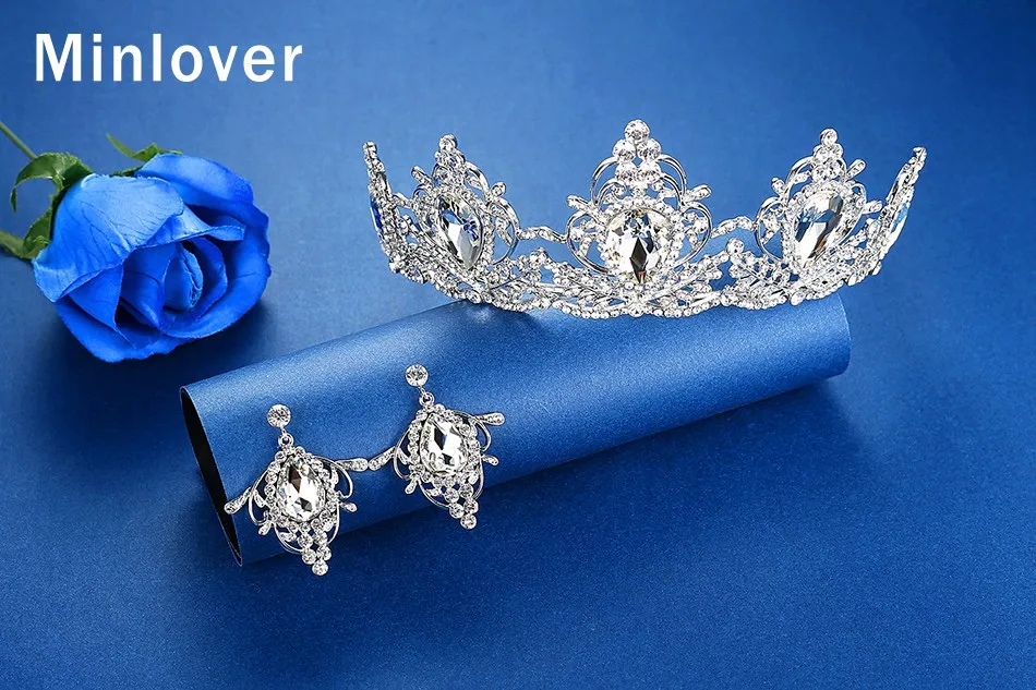 Свадебная Корона Minlover королевская свадебная тиара королева диадема с висячими серьгами пышная головная повязка принцесса украшение для волос HG194