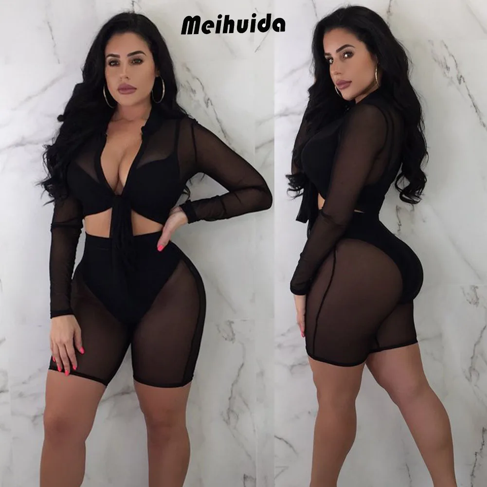 Style : Women See Through Mesh Shorts Set