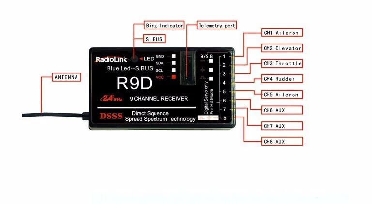 Характеристика: DSSS & amp; FHSS техника, супер анти-помех и стабильность RX напряжение и сила сигнала Телеметрия, расширительный датчик для EP, температуры, RPM, GPS и т. Д. S.BUS. CH9 предназначен для S.BUS Для всех 9 каналов требуется 3 мс для параллельного ответа Секционная точность 4096, стабильный сервопривод, без тряски руля HV вход до 10 в Мини-дизайн для удобной сборки и эксплуатации Характеристики: Бренд: RadioLink Модель: R9DS Канал: 9 каналов, CH9 для S.BUS Максимальное входное напряжение: 10 в Ток: 38-45 мА (Входное напряжение: 5 В) Секционная прецизионная 4096 Размер изделия: 41*23*14 мм Вес изделия: 10,7 г Посылка: 1 * радиоприемник R9DS 9CH 2,4 ГГц