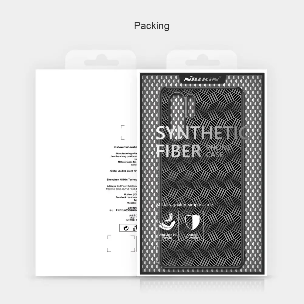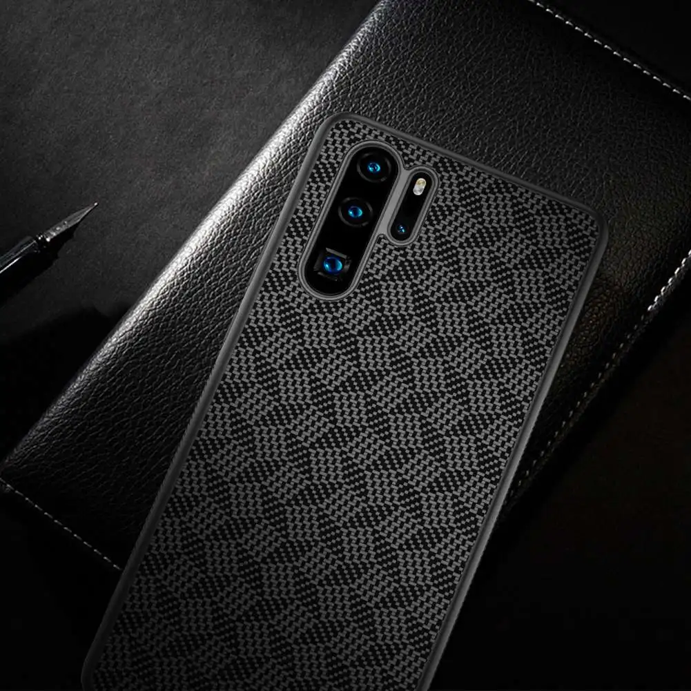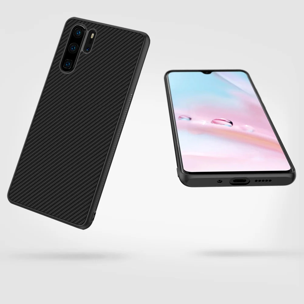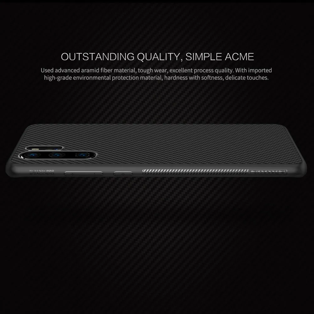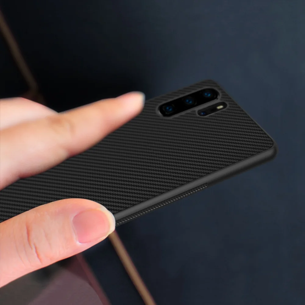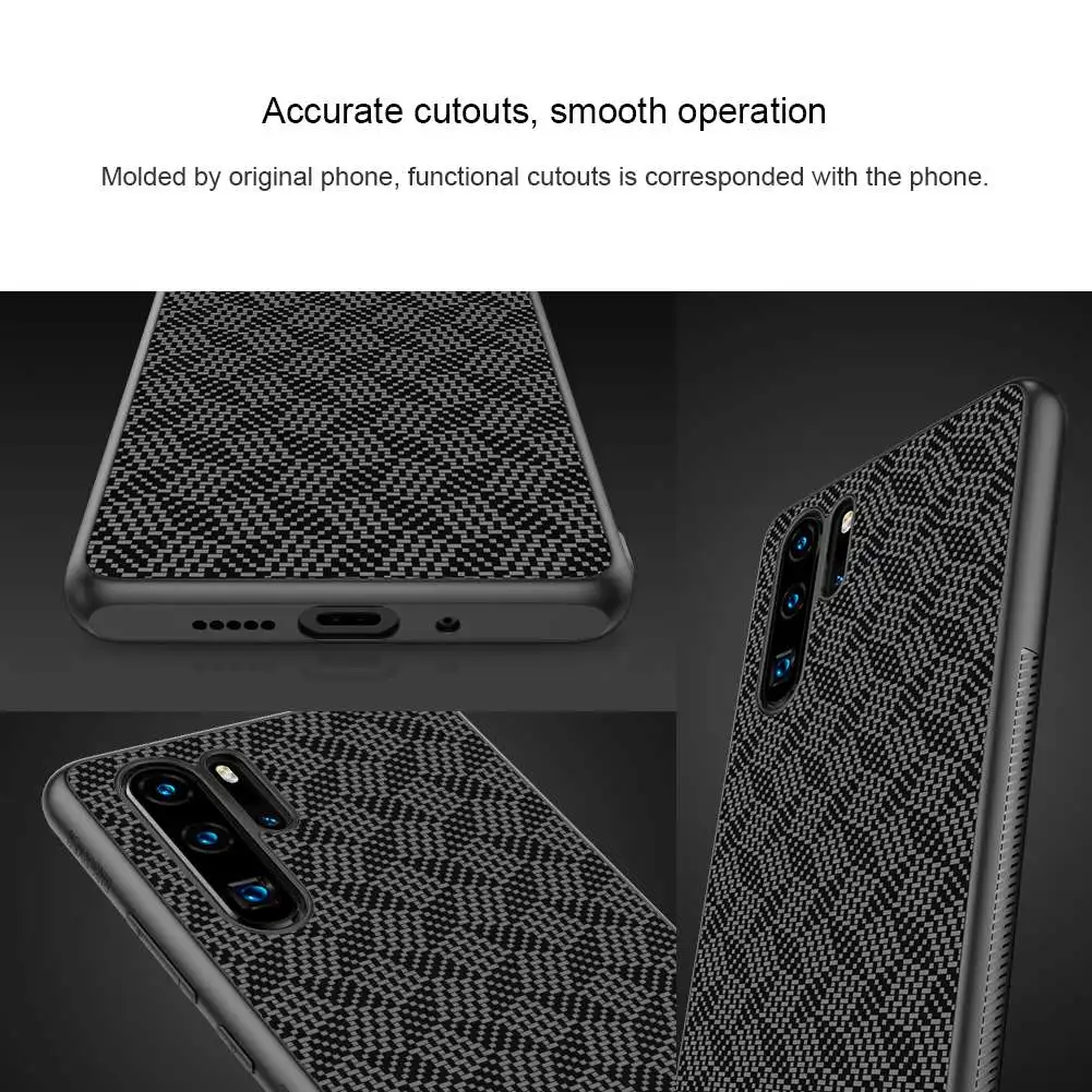 Synthetic fiber case for Huawei P30 Pro By NILLKIN Features * Using advanced aramid fiber material, tough and wearproof, excellent process quality.hardness with softness, delicate touches, lightweight and tough. * Inject dual imported aramid fiber material, and make full use of sophisticated rigorous weaving process to make a regular geometric texture, impressive clarity, unique style. * Advanced hot forming process. Imported woven aramid fiber material closely joint with PC back shell, * The surface is processed by rubber oil spray techniques, which makes it as baby-like skin with perfect touch, fingerprints can be removed immediately. Production Description * Compatible Models: None * Material: TPU+Plastic+Synthetic fiber * Thickness: 1.4mm * Option colors: Black * Retail package: Color box packaging Product View