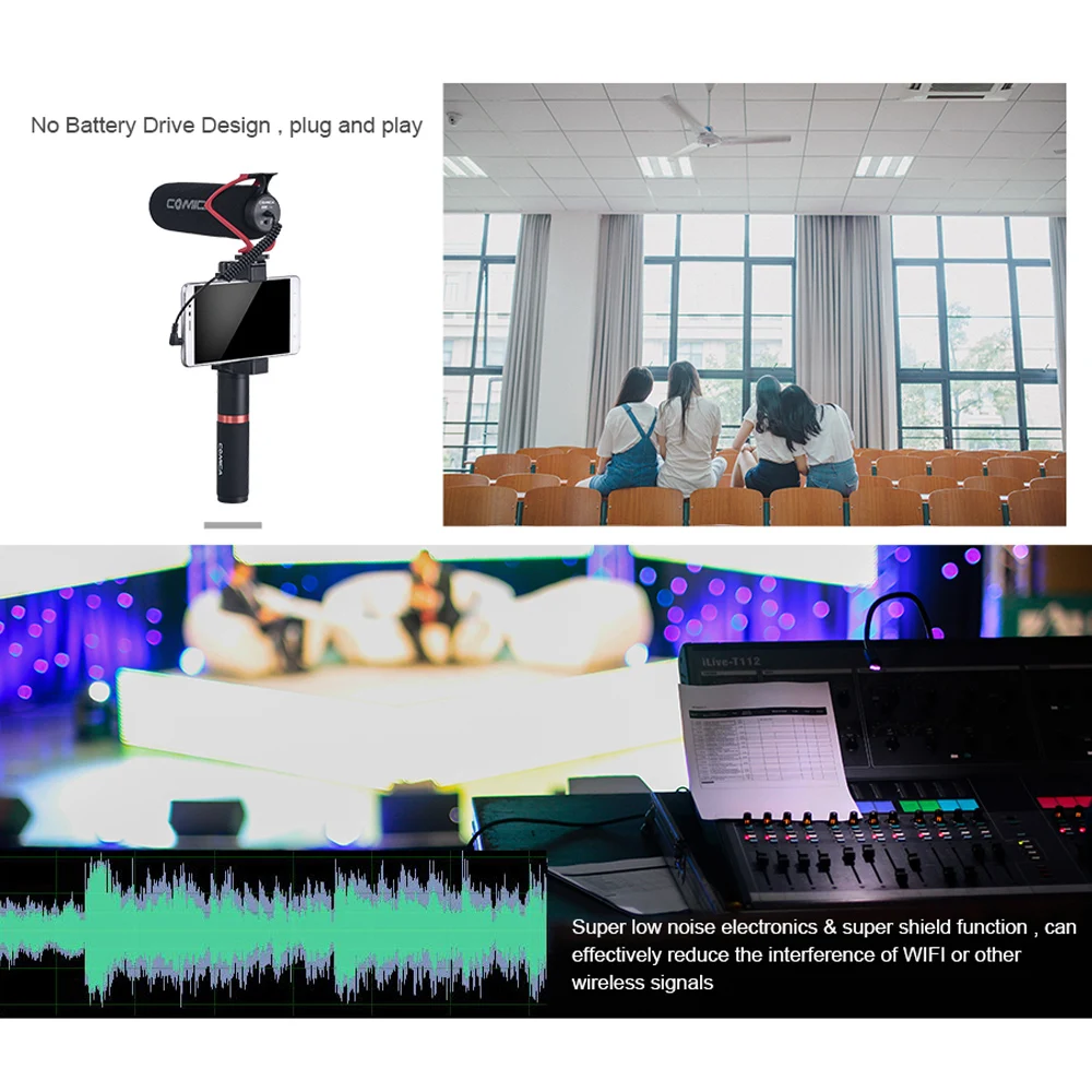 Суперкардиоидный Полярный микрофон поддерживает смартфон и камеру.