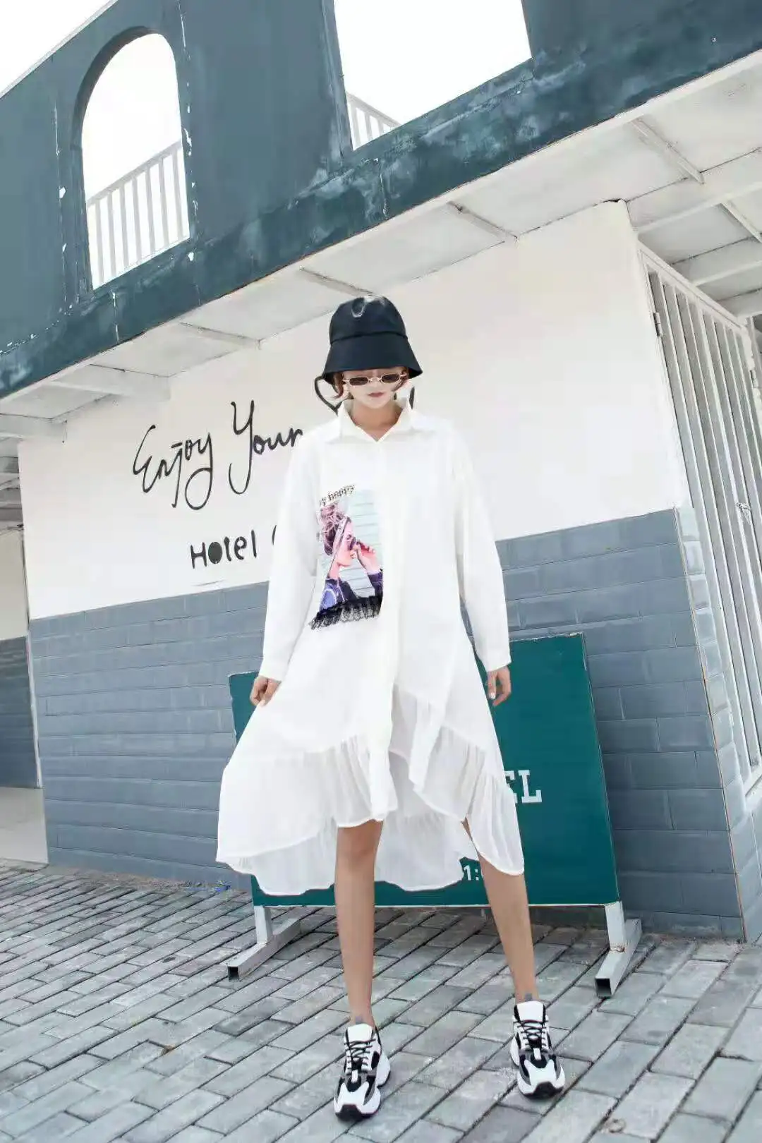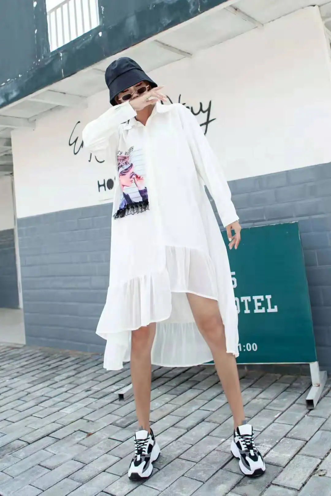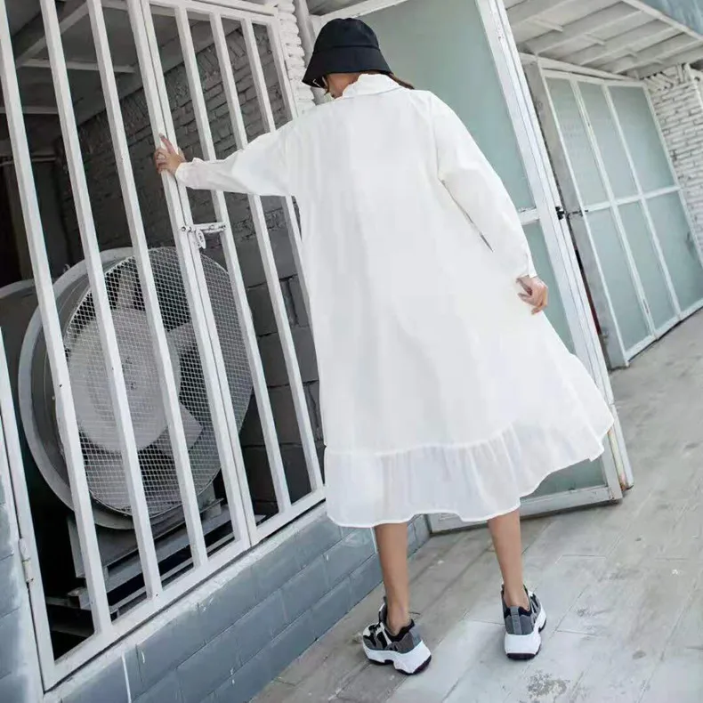 Шикарное белое платье рубашка Neploe с отложным воротником и длинным рукавом модное