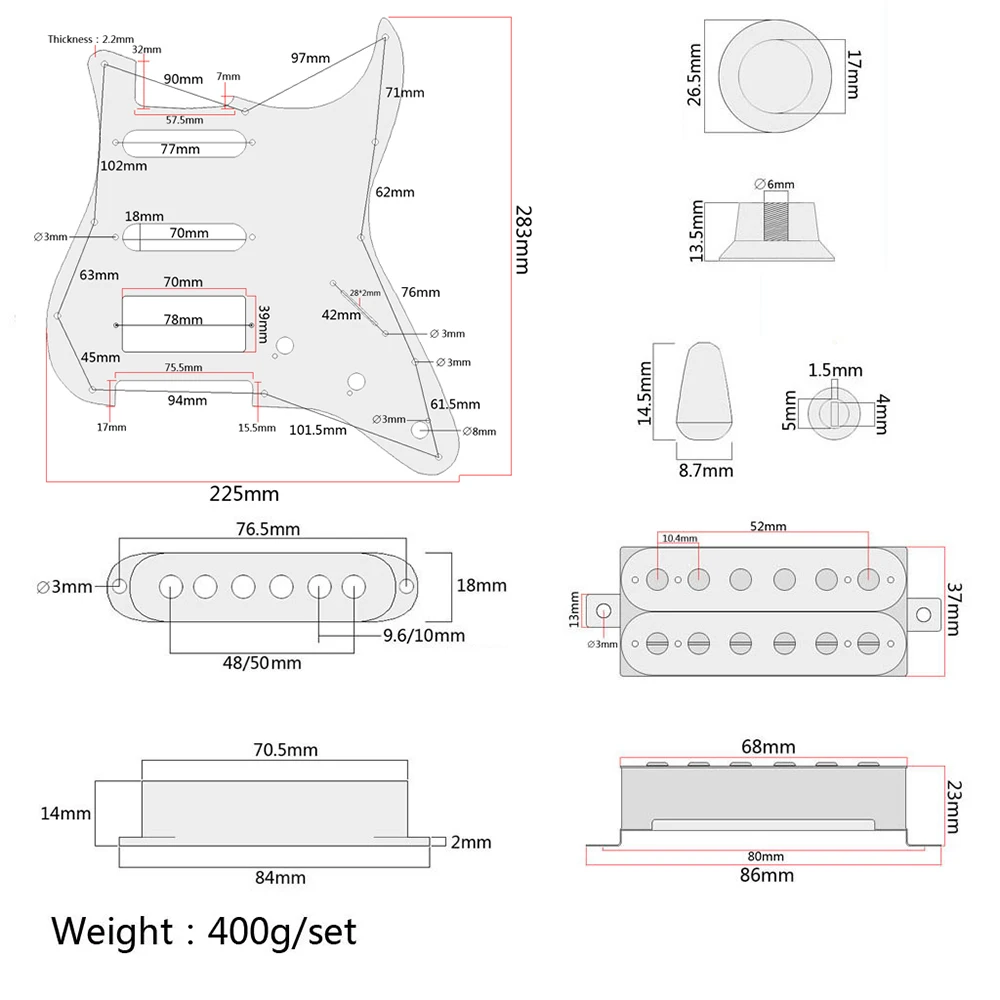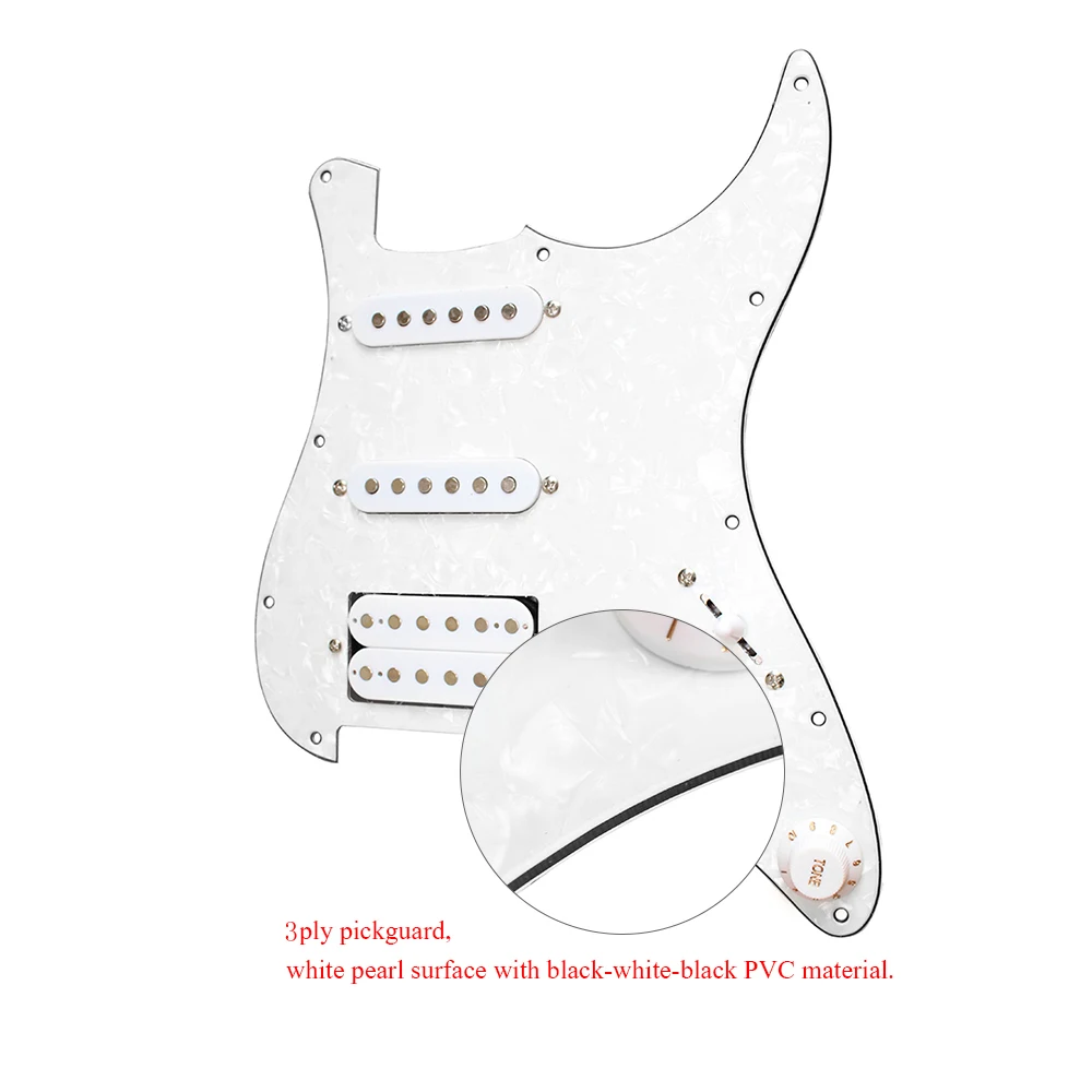 Загруженного накладку набор функций 2 одиночной катушки пикапов и 1 хамбакер, с 1 объем, 2 тон ручки управления и 5-позиционный переключатель, его 3-слойная конструкция прочная и прочная Высококачественная звукосниматель помогает придать яркий и четкий тон.