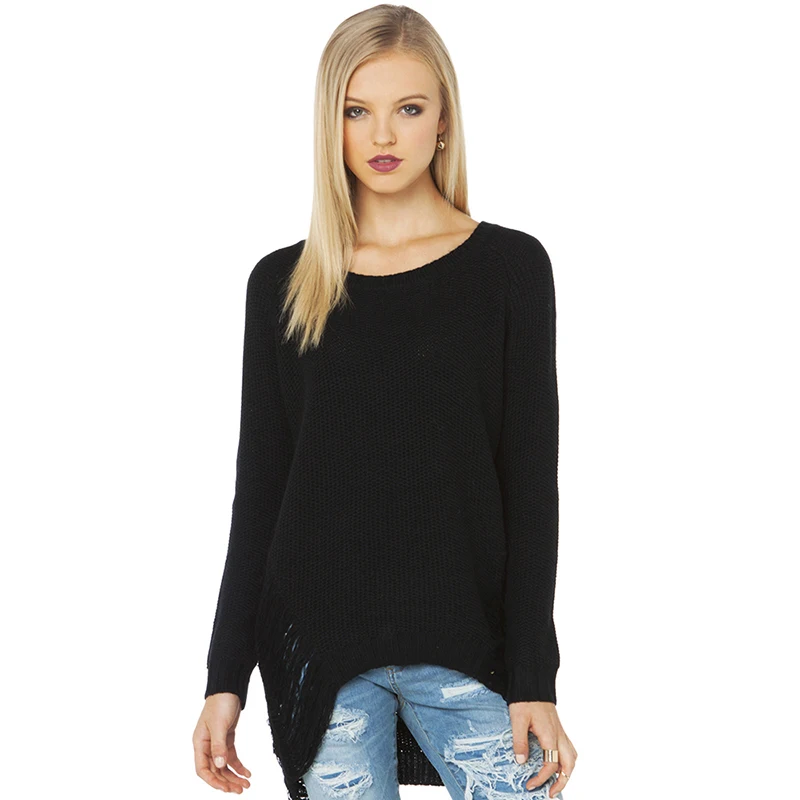 HDY Haoduoyi осенний пуловер Ретро полые реглан рукав ребристые ласточкин хвост подол