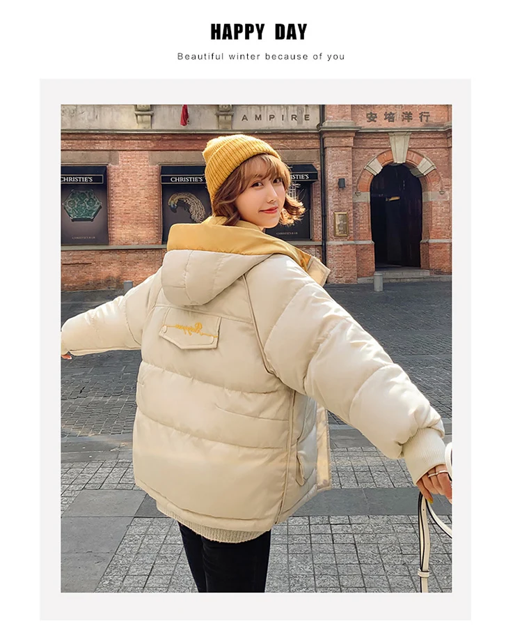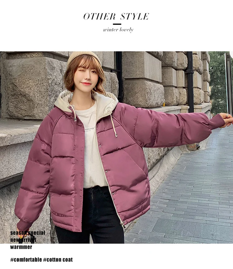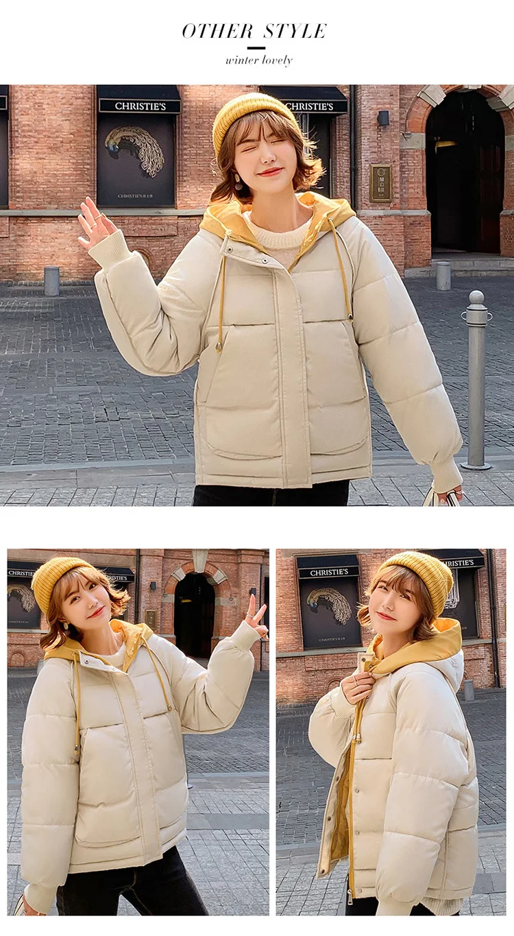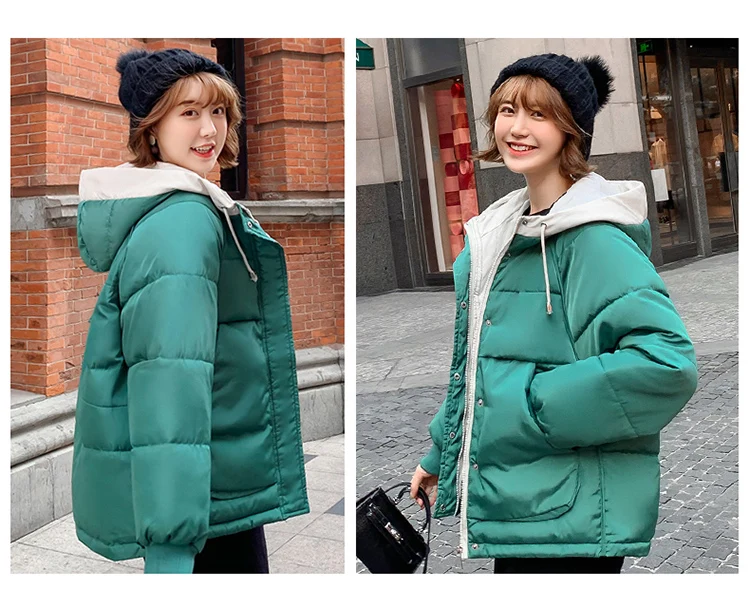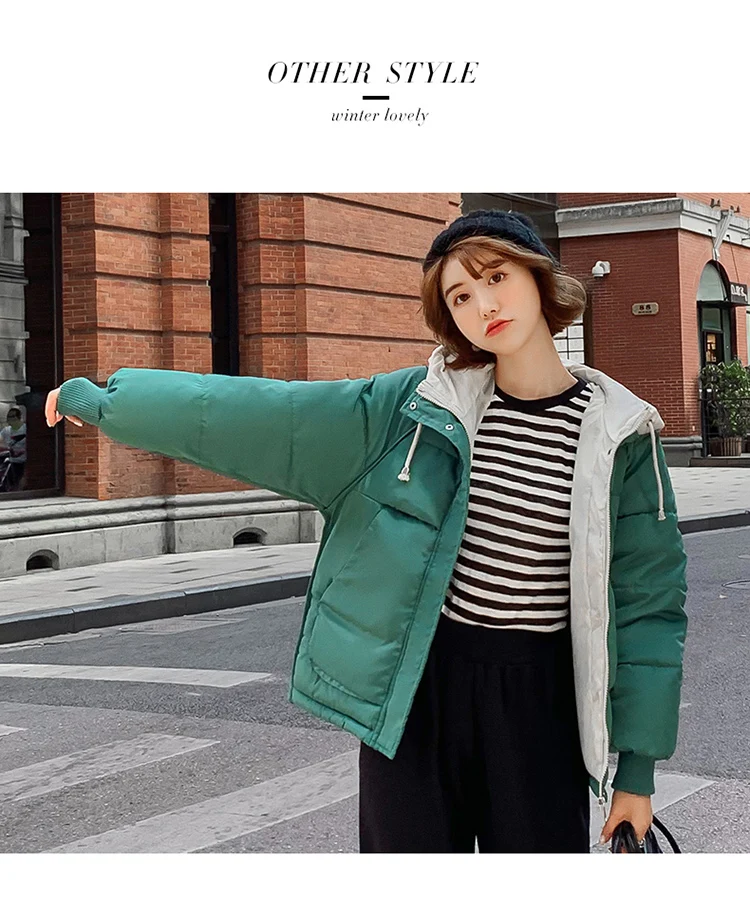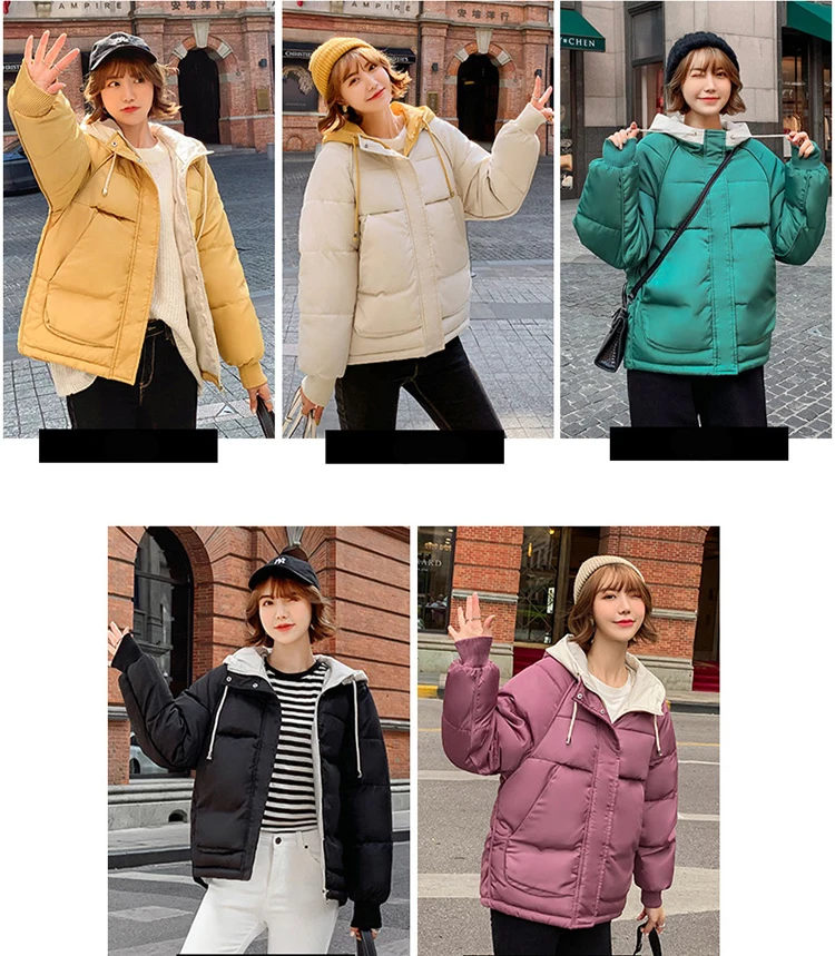 Зимний пуховик с длинными рукавами, хлопок 2019, Корейская версия, хлопок, короткий отрезок, хлопок, одежда, свободное новое пальто с капюшоном