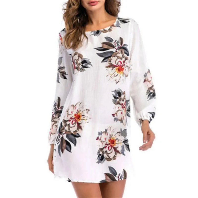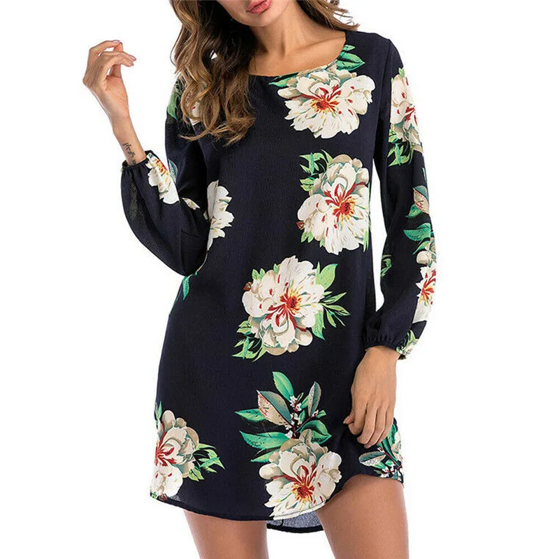 Женские стильные модные праздничные платья с длинным рукавом Boho Цветочные платья женские повседневные Мини-сарафаны Женская Горячая Распродажа Новая одежда