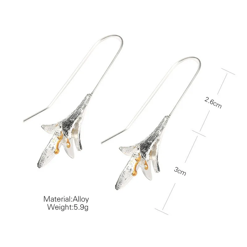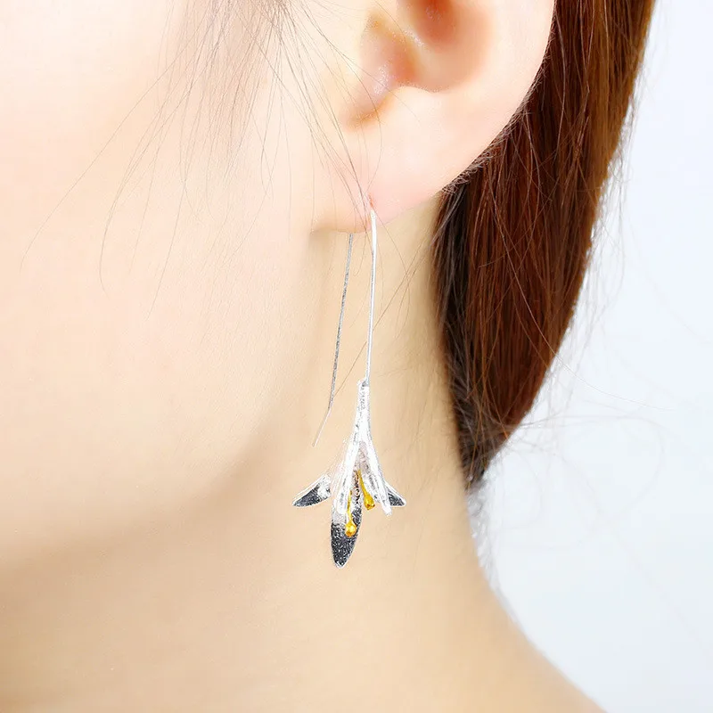 2019 Ladies Lily Silver Plated Drop Earrings Simple Elegant Lotus Long Earrings Women Vintage Orchid Fashion Earrings