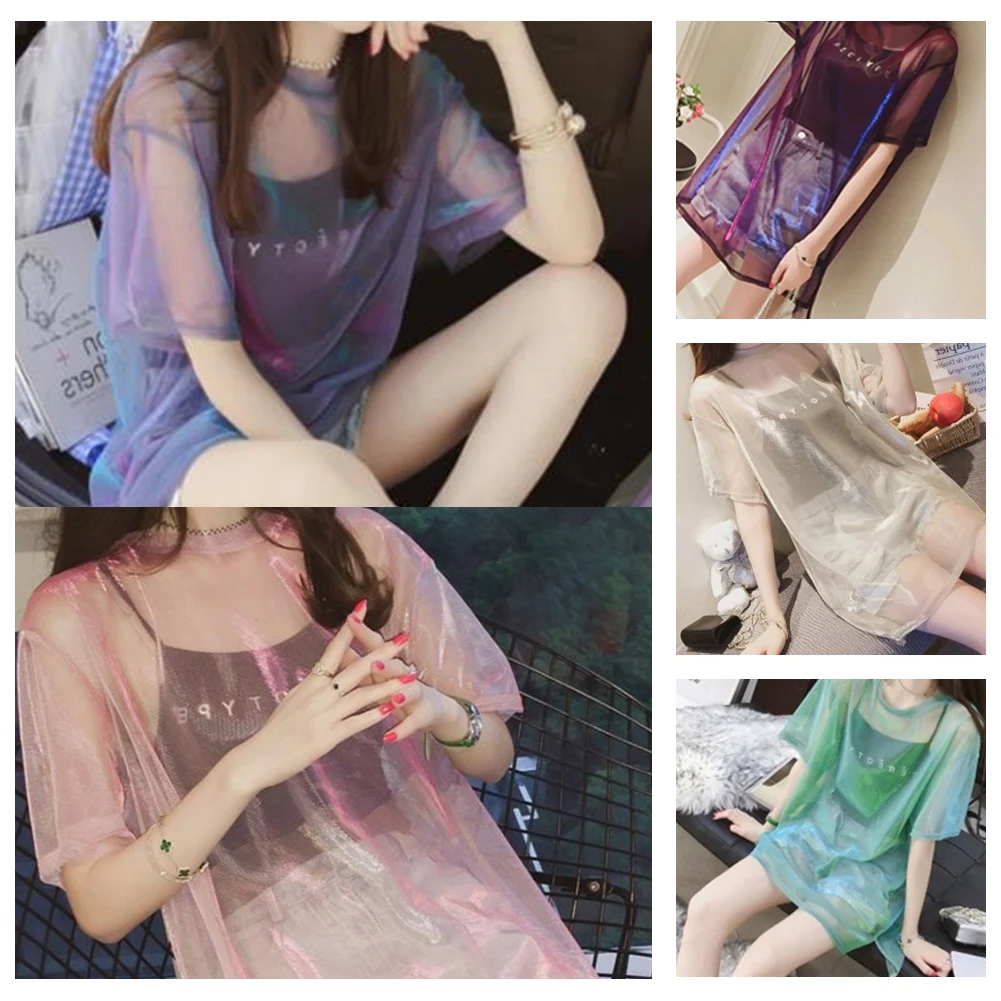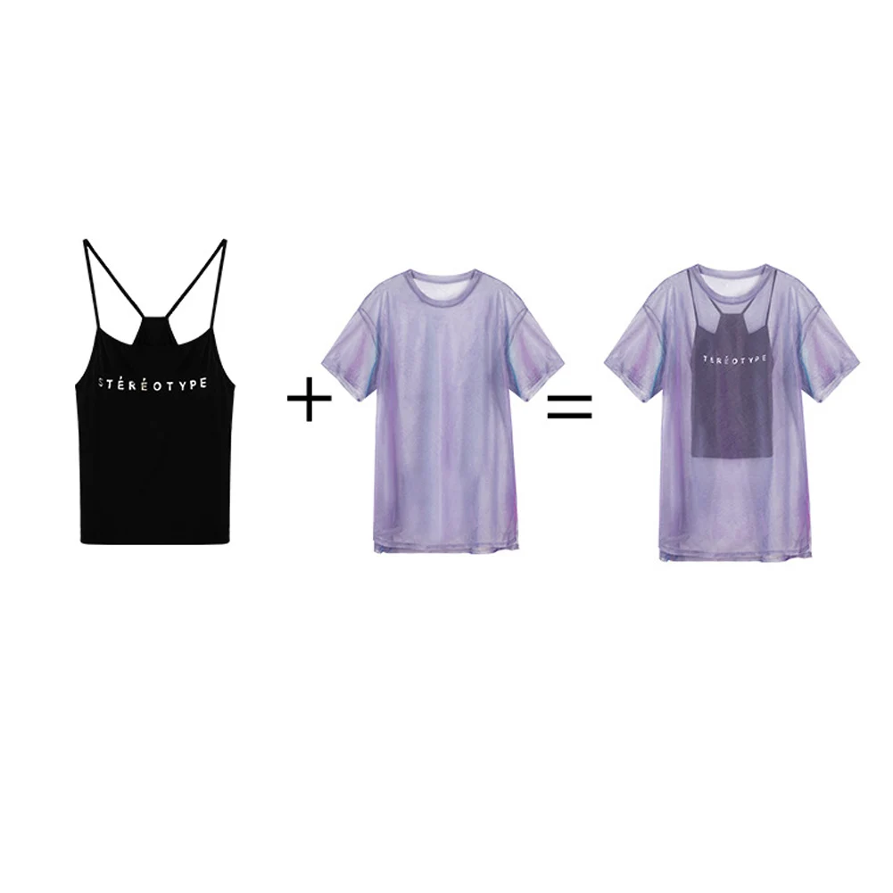 1 х Женская сетчатая рубашка + топ на бретельках