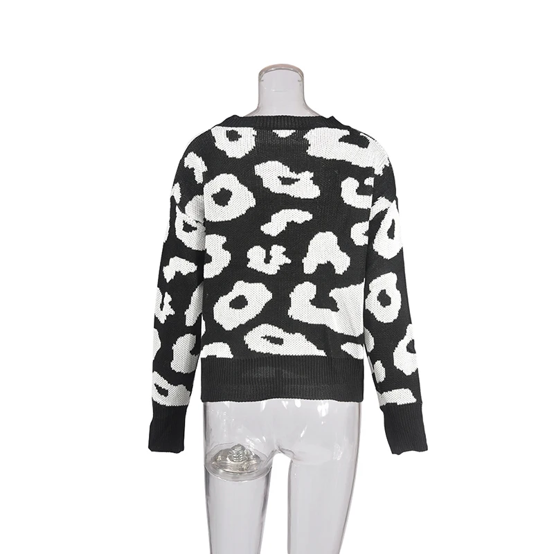 Свитер женский однотонный с V-образным вырезом и длинными рукавами весна 2021 |