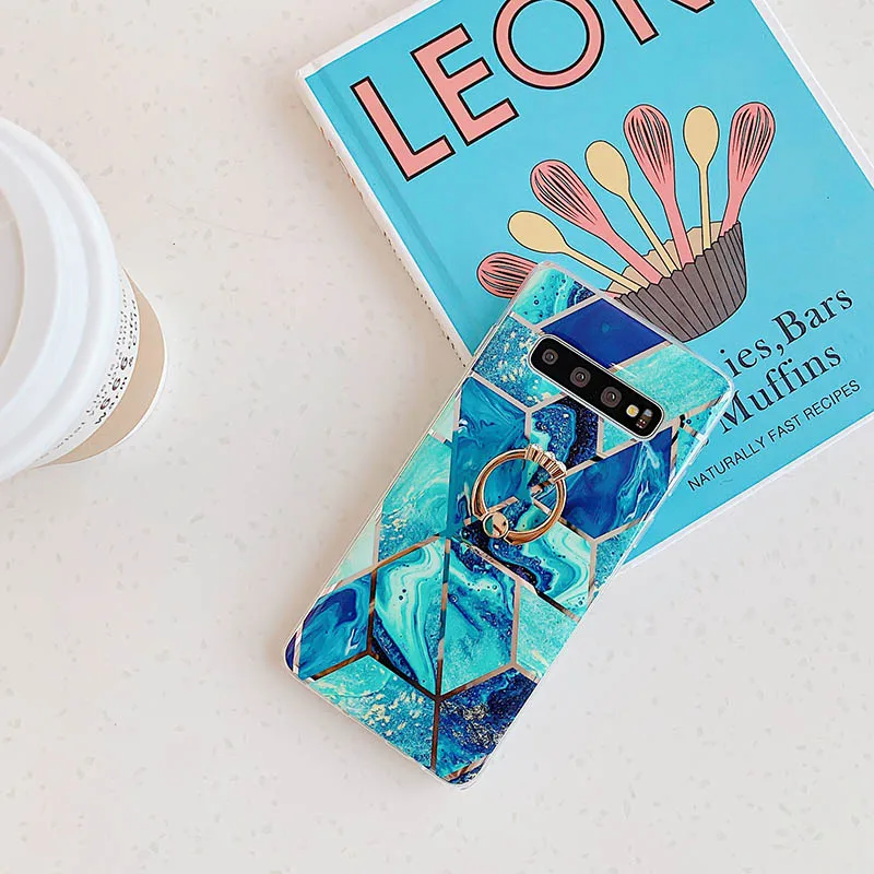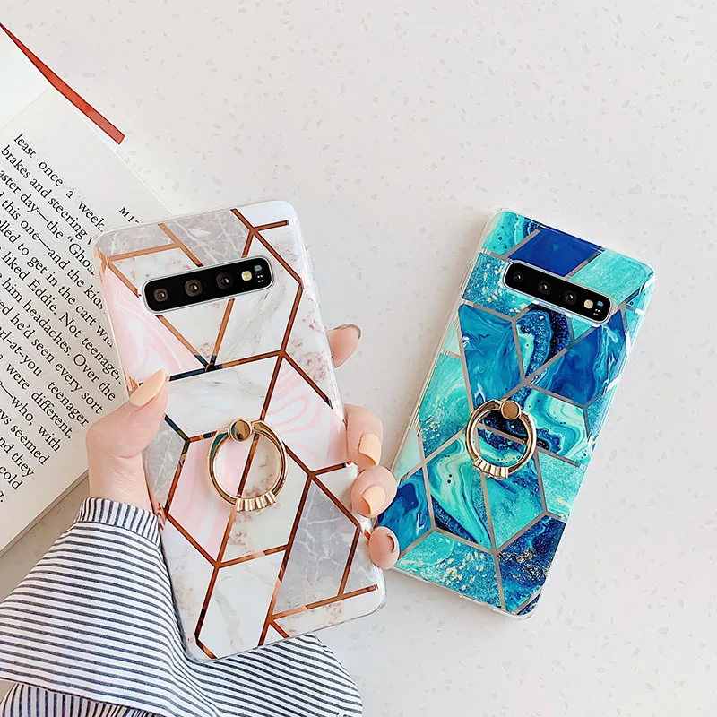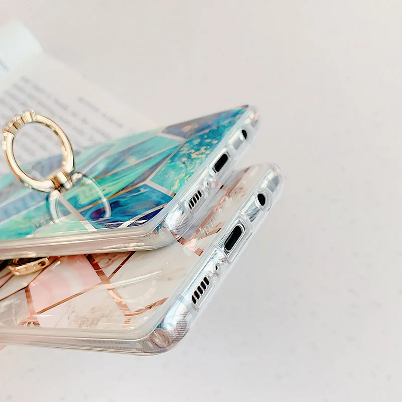 1.Модные мраморные сращивания покрытие Геометрические линии Алмазный Блестящий держатель Стенд задняя крышка Мягкий силиконЧехол для телефона