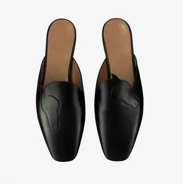 Дизайнерские шлёпанцы; Цвет черный, белый; женская обувь на плоской подошве с квадратным носком; женская обувь на низком каблуке; женские шлепанцы без застежек на пятке