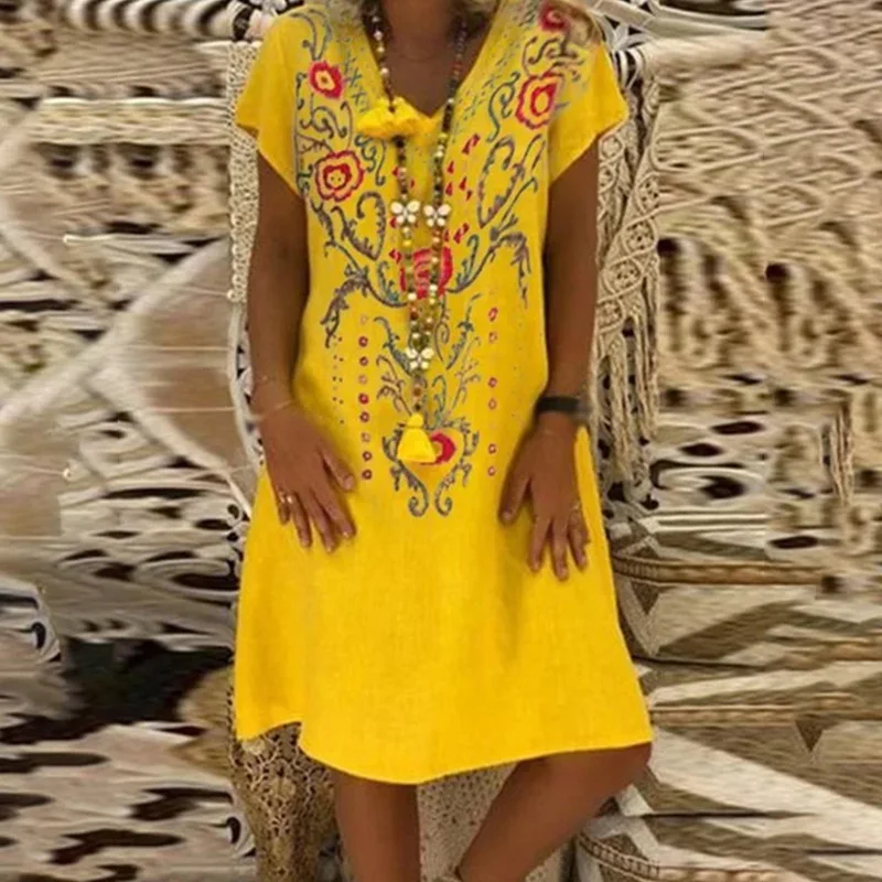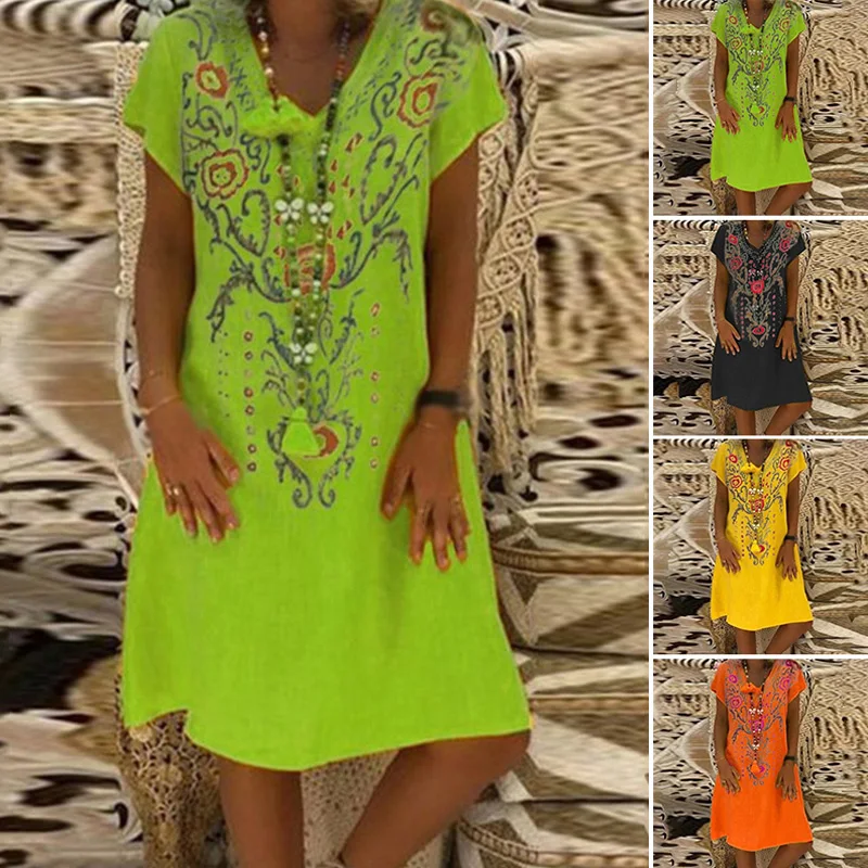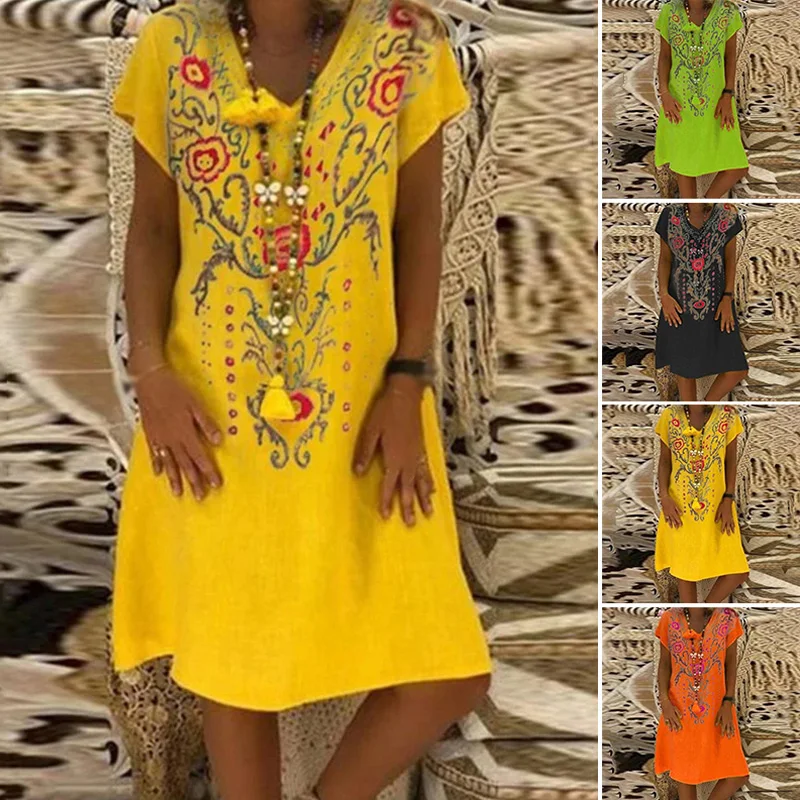 * Описание товара: женское повседневное свободное пляжное платье-рубашка с v-образным вырезом и коротким рукавом с цветочным рисунком