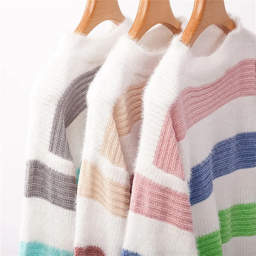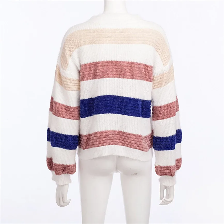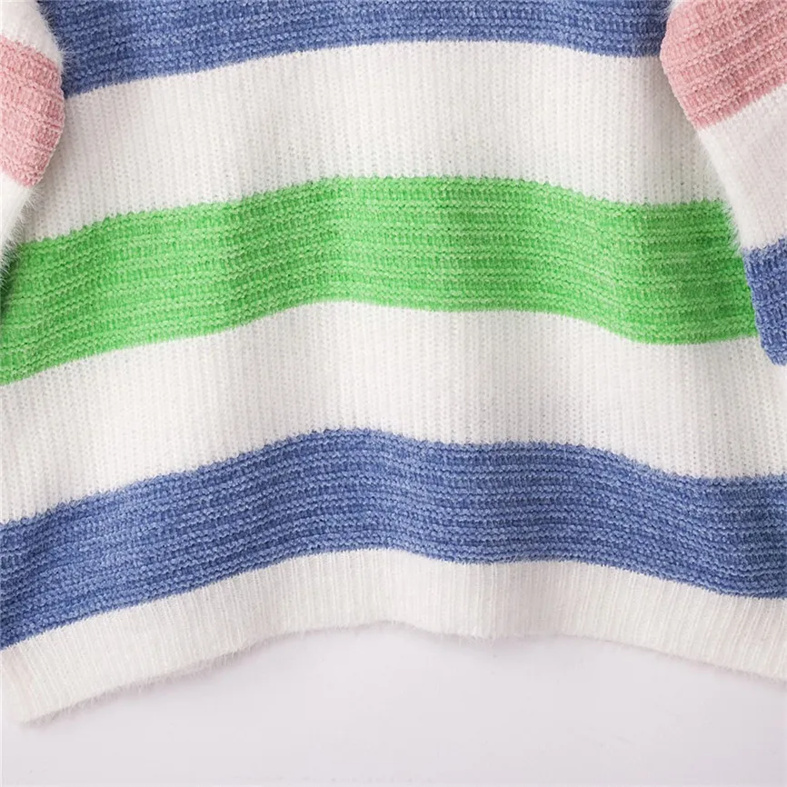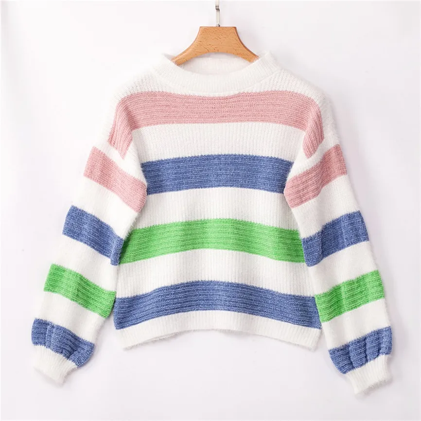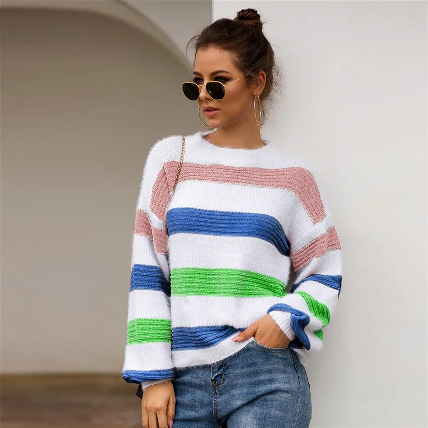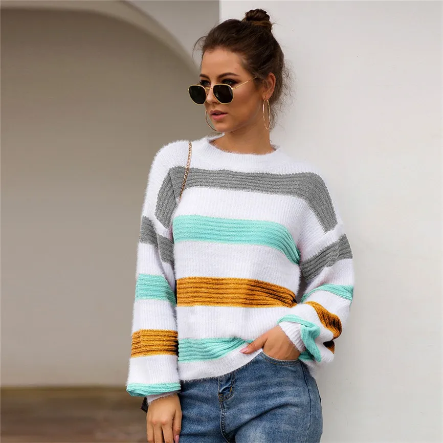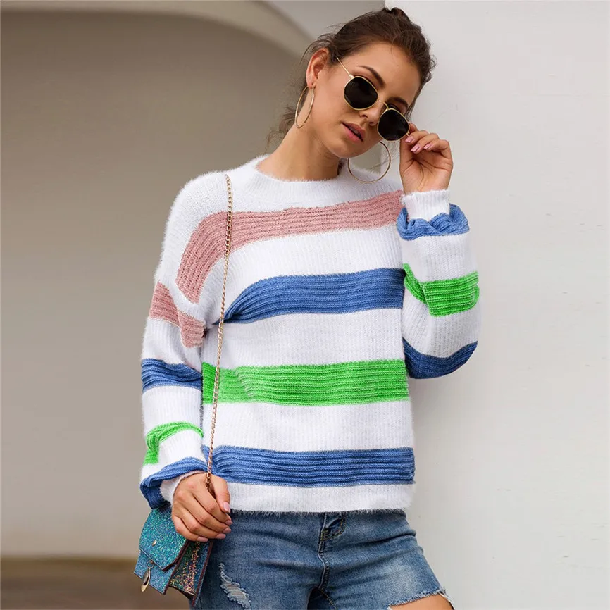 Женские свитера, пуловеры размера плюс, женские вязаные полосатые Лоскутные Свитера с длинным рукавом и круглым вырезом, женские свитера Invierno 2019