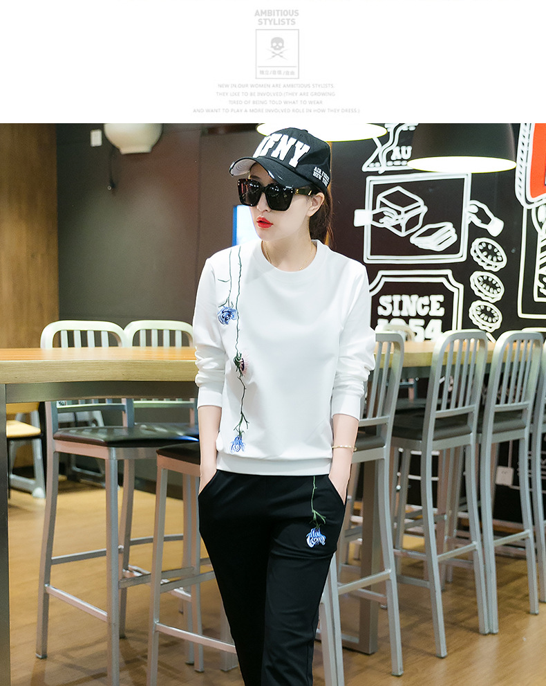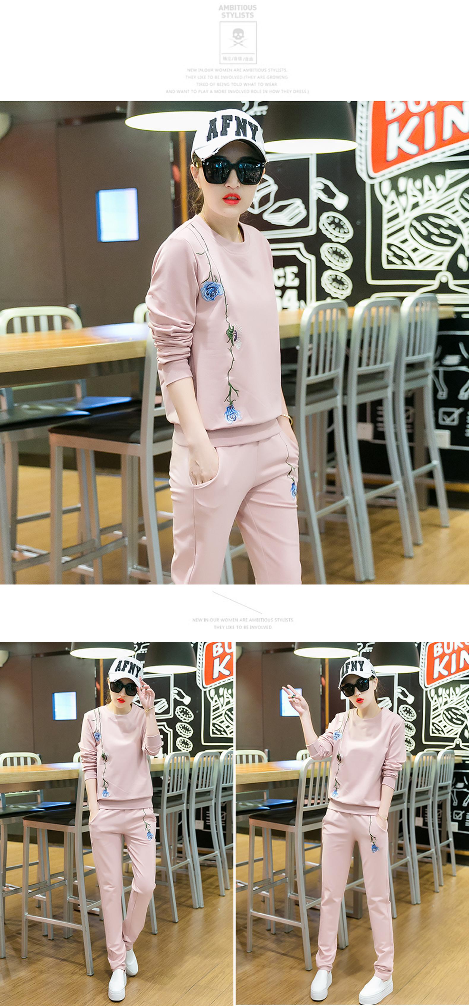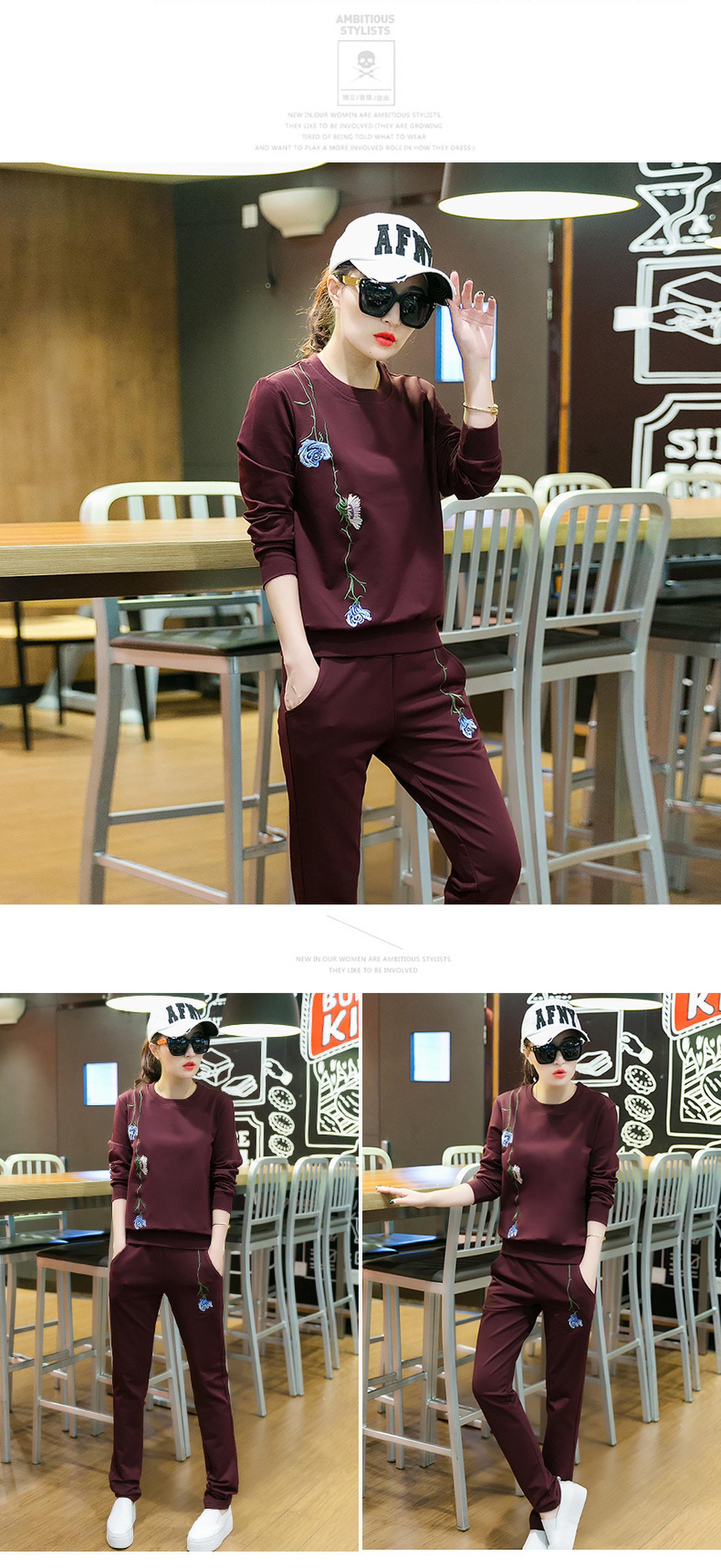 2019 женский костюм, спортивный костюм с вышивкой и цветочным принтом, весенне-осенний женский топ + штаны, модный костюм, женская одежда, большие размеры