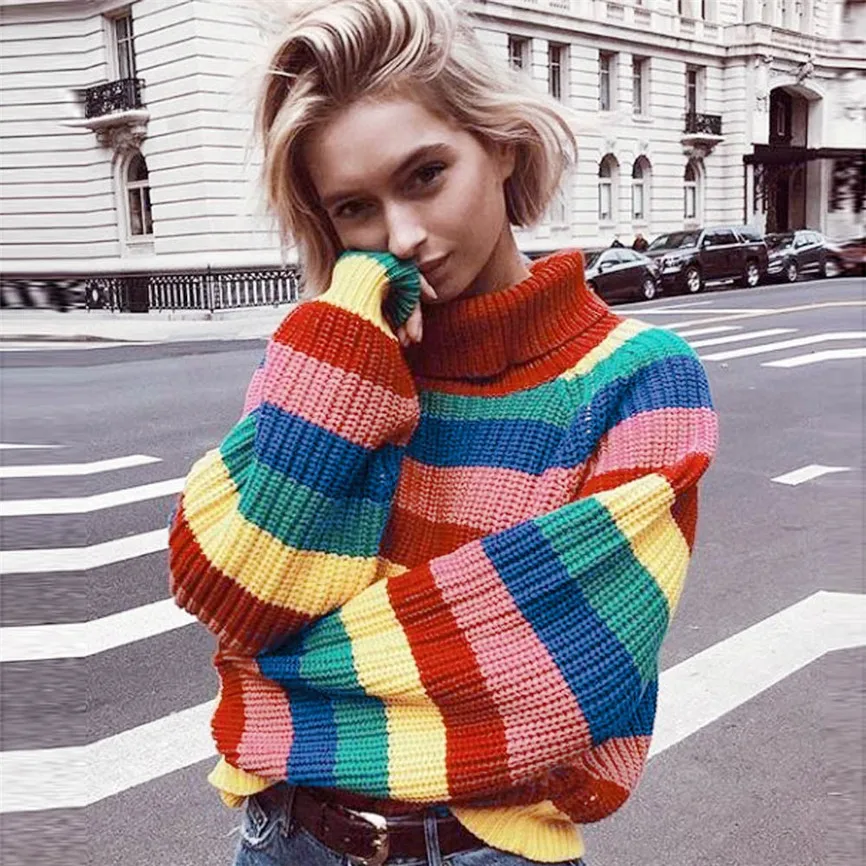 Autumn winter Women Sweater Pullover 2018 New Fashion Colorblock O-neck Loose Knit Bottom Large size Clothing | Женская одежда
