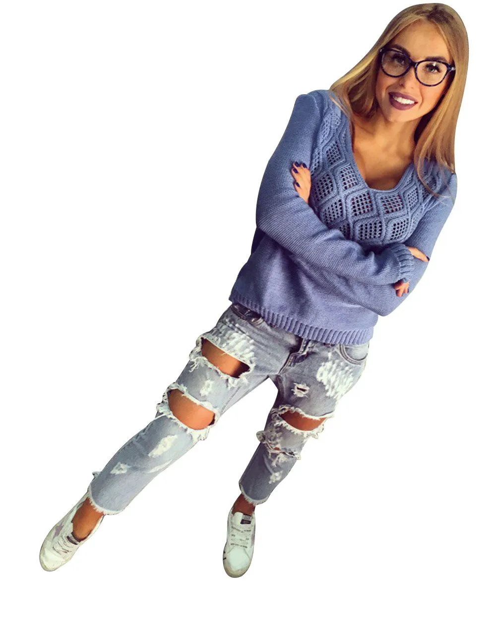 Women Long Sleeve Knitted Pullover Loose Sweater Jumper Tops Knitwear