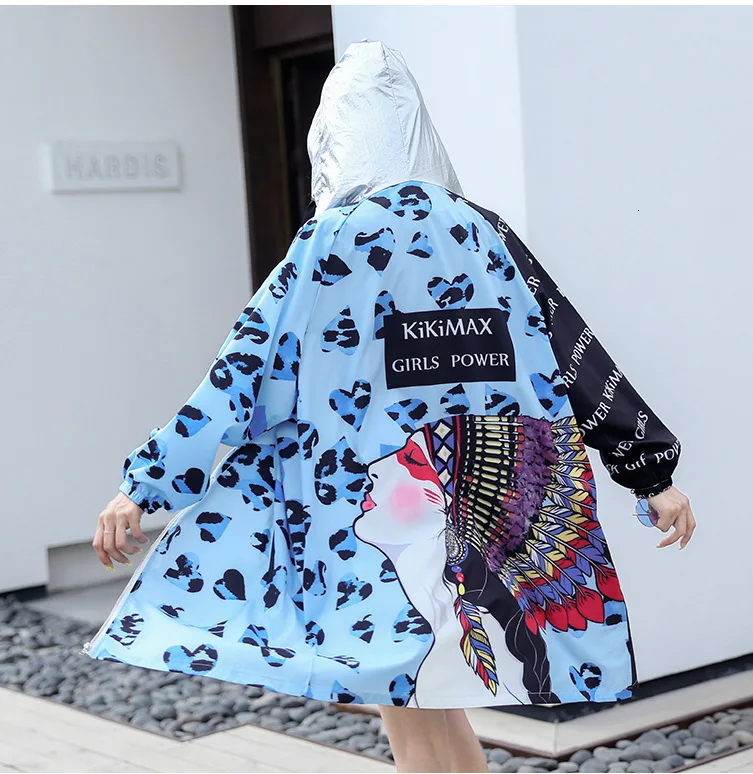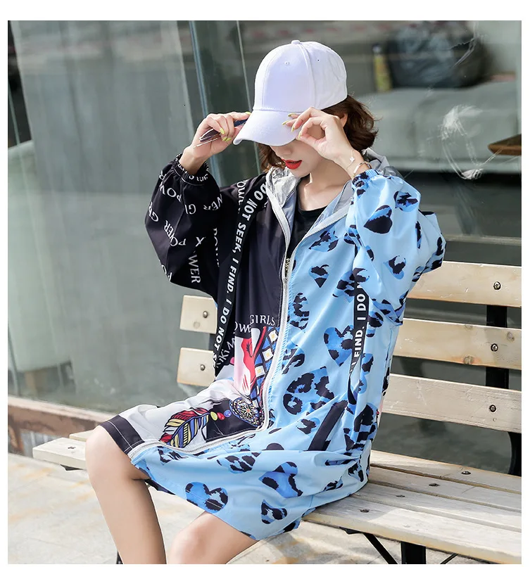 Vefadisa Autumn Woman Cartoon Printed Spliced Coat Loose Zipper