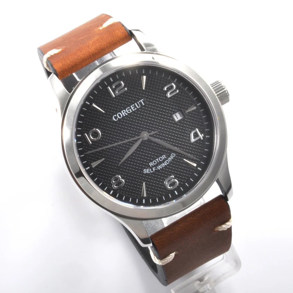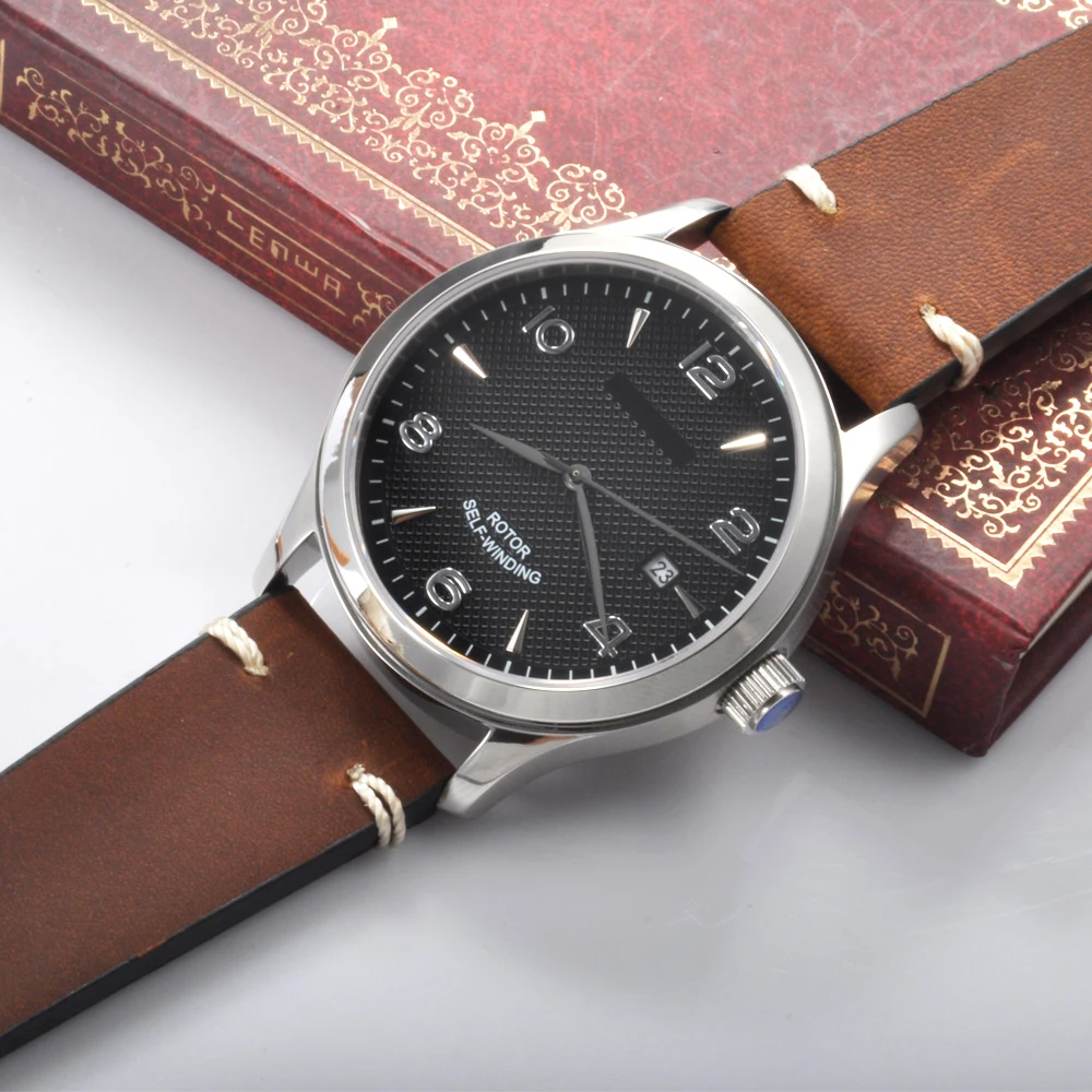 Описание колебательная система: автоматический механизм чехол: матовый 316L твердая нержавеющая сталь чехол Диаметр: чехол Диаметр 42 мм без короны Толщина: 11,7 мм Циферблат: черный циферблат Функция: даты на 3'clock ремень: водостойкость кожаного/нейлонового ремешка: 3 АТМ стекло: сапфировое стекло