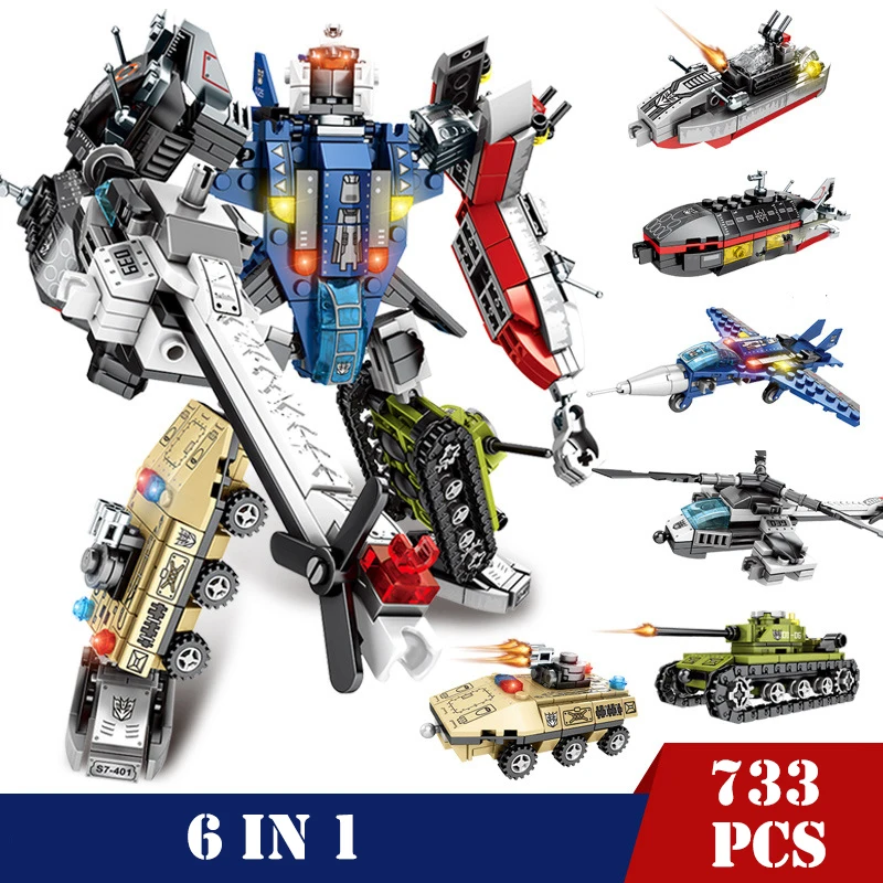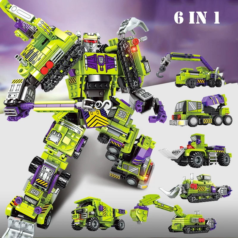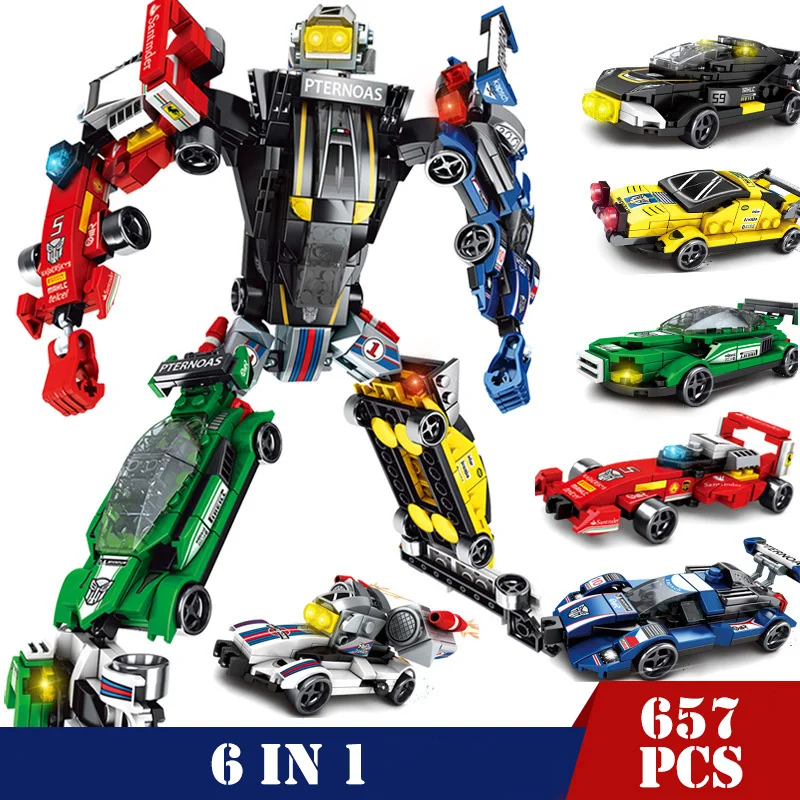 6 в 1 крутой механический трансформатор фигурки роботов машины Строительные блоки для грузовиков городской техники просветить Кирпичи DIY игрушки для детей Подарки