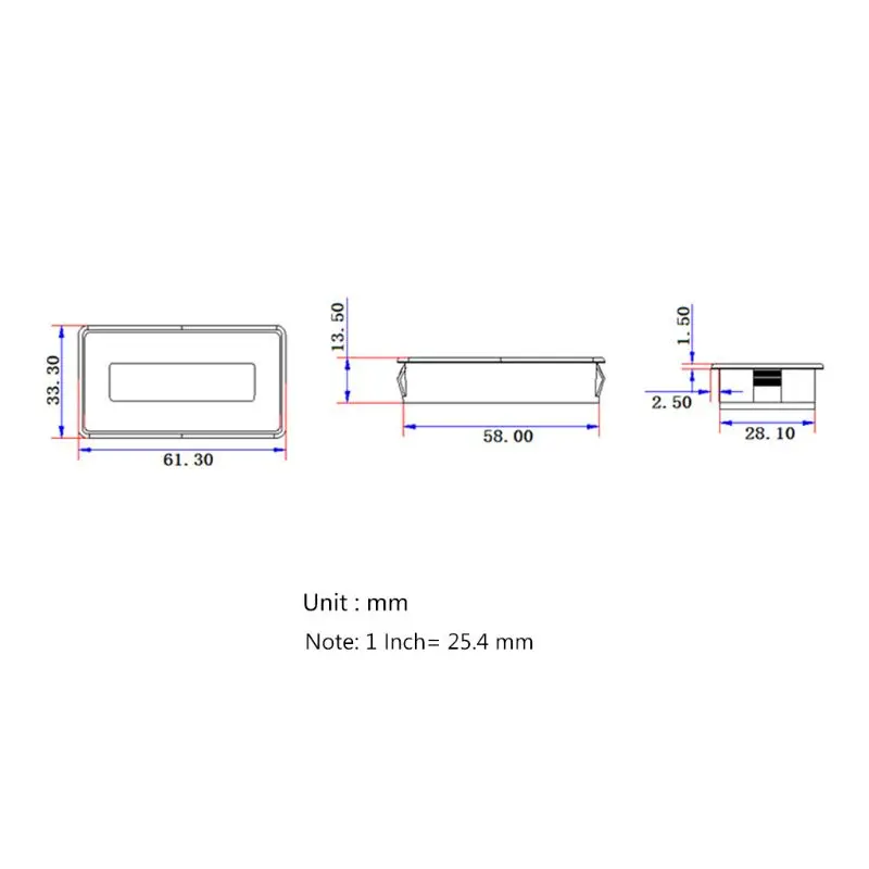 Размер: 61,3 мм x 33,3 мм x 13,5 мм/2,41 ''x 1,31'' x 0,53''