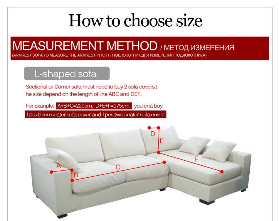 Пожалуйста, измерьте ваш диван перед покупкой. Измерьте длину дивана от точки А до (включая подлокотник), а затем выберите правильный размер из приведенного ниже списка: Длина: 90-140 см (35-55 дюймов), выберите 1 место (кресло); Длина: 145-185 см (57-73in), выберите 2 места (Loveseat); Длина: 190-230 см (75-91in), выберите 3-сиденье (диван); Длина: 235-300 см (92.5-118in), выбирайте 4-сиденье (XL диван).