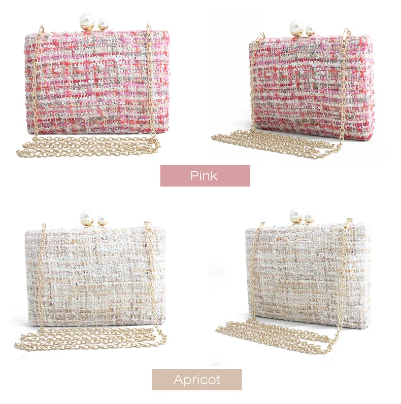 Material: Cotton fabric Color: pink,green,apricot,black/blue,black/powder Style: handbags, shoulder bag, crossbody, evening bag,clutch bag Size: 18CM*5CM*13.5CM Occasion: Party, Business,Versatile