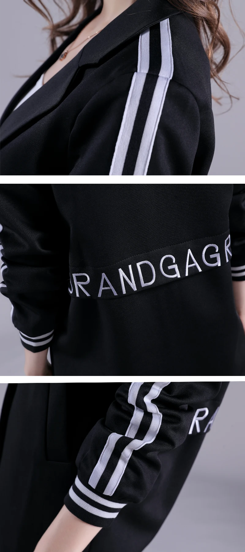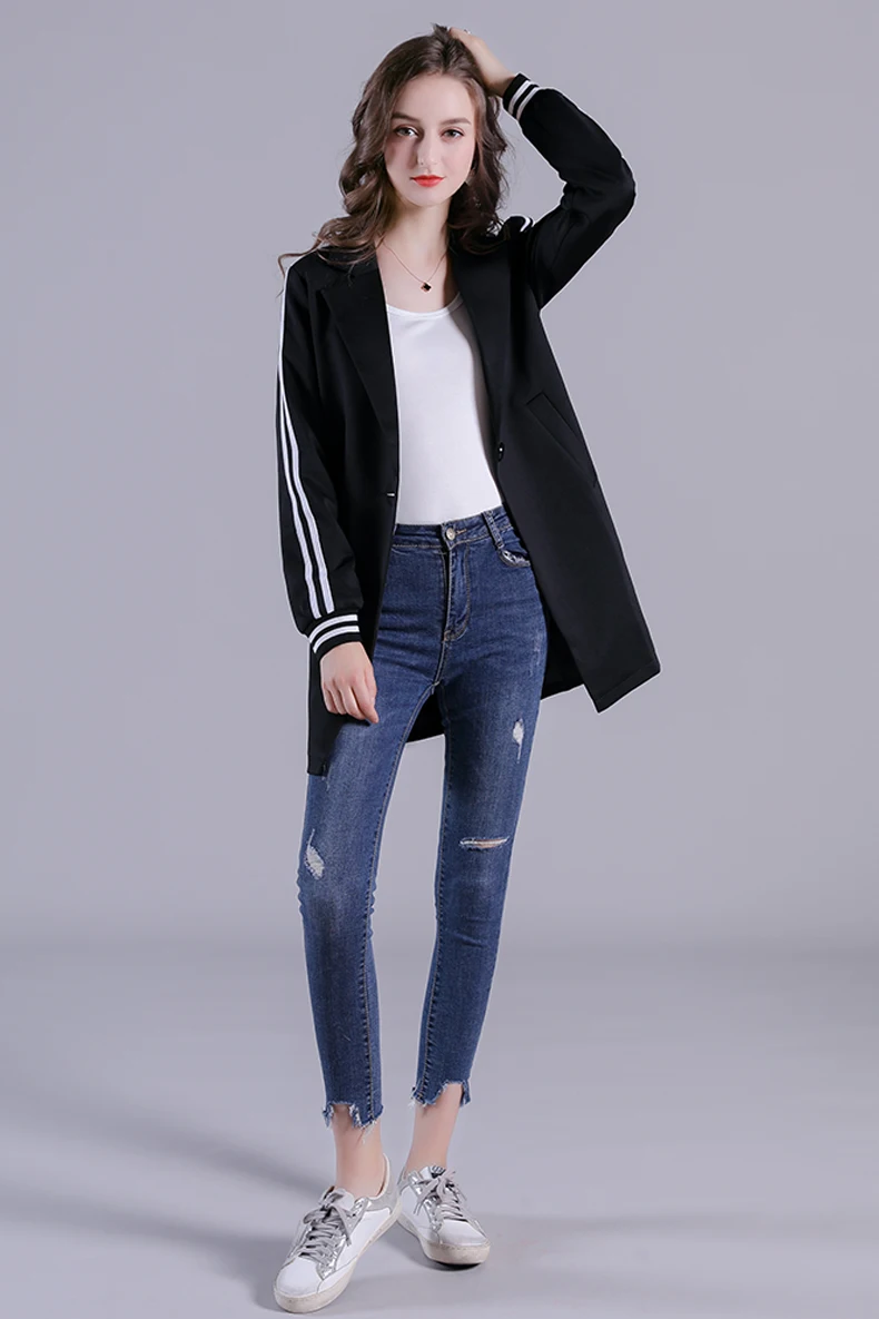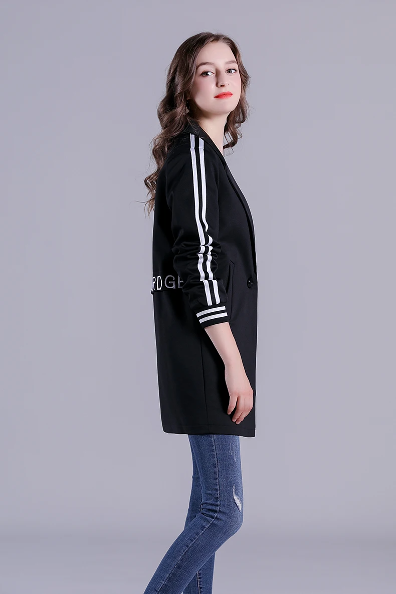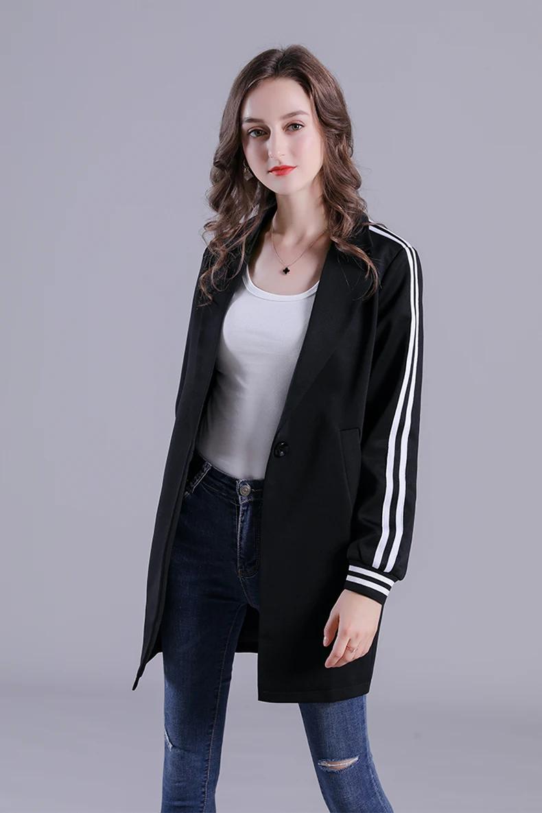 Черный Повседневный Блейзер Свободное пальто женский длинный стиль Универсальный спортивный костюм куртка