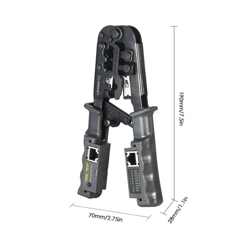 Этот инструмент является сетевым обжимным инструментом, который объединяет обжимные, режущие, зачистки и измерения. Это удобно, быстрее и эффективнее в использовании.
