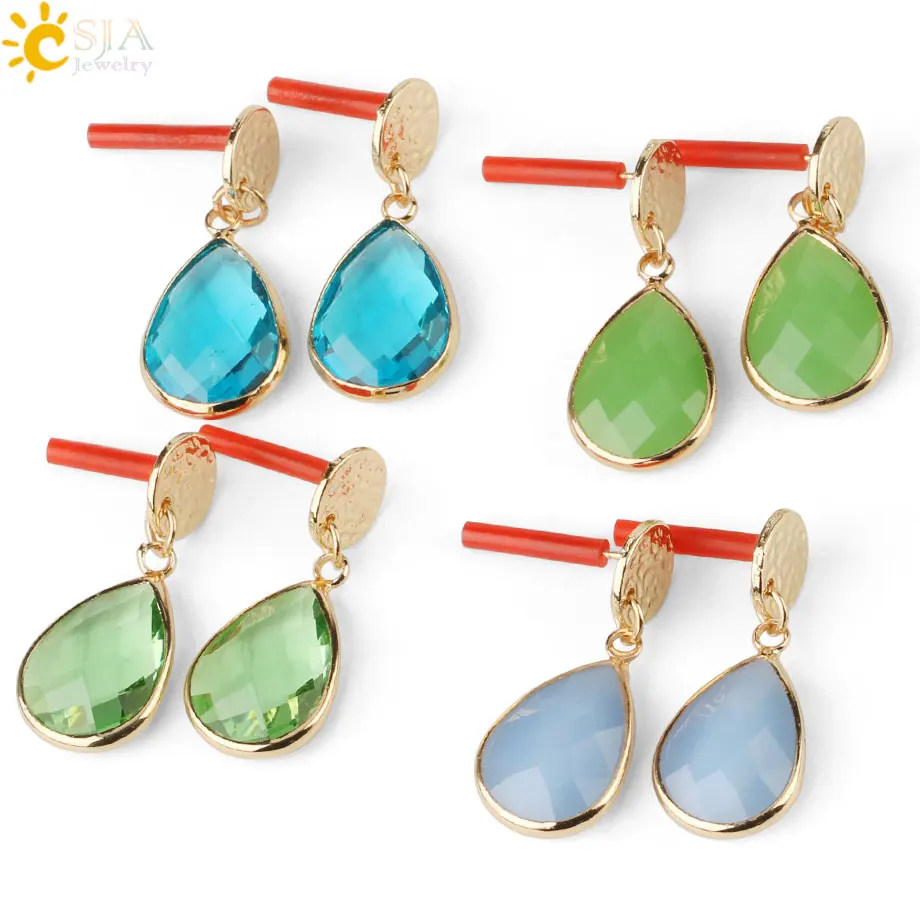 CSJA, Золотые серьги-гвоздики в форме капли воды, муранское стекло, кристалл, бусина, подвеска, серьги для женщин, девушек, темперамент, ювелирное изделие G176 | |