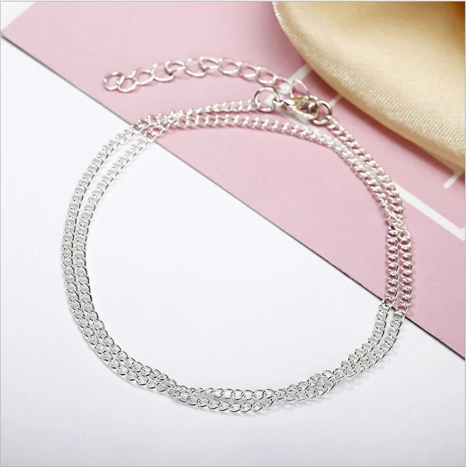 Белая веревка через сердце очарование Посеребренная металлическая цепочка женский ножной браслет подарок