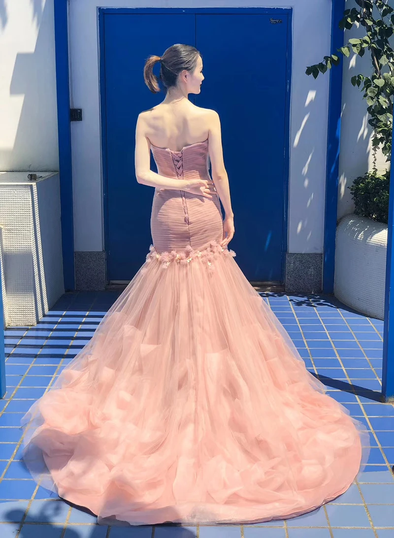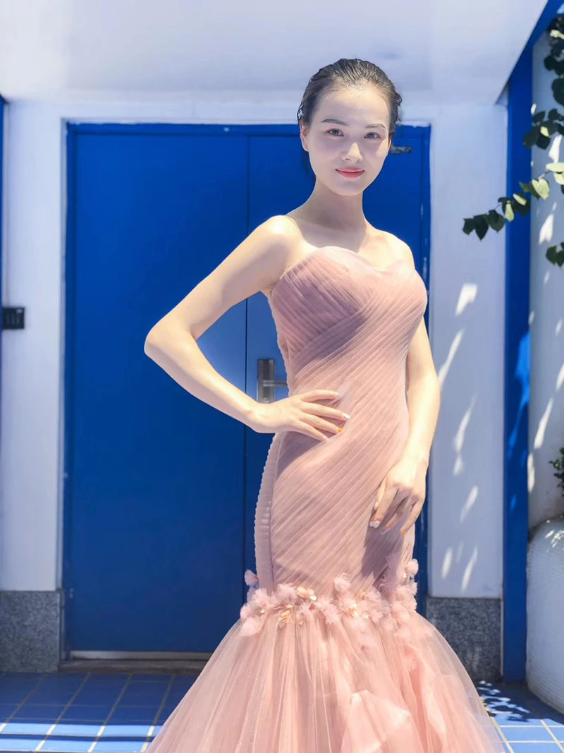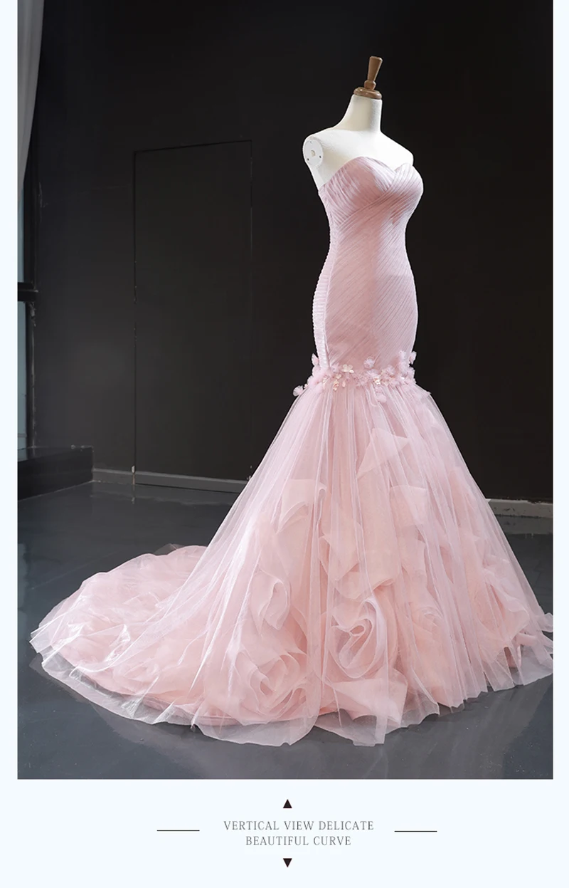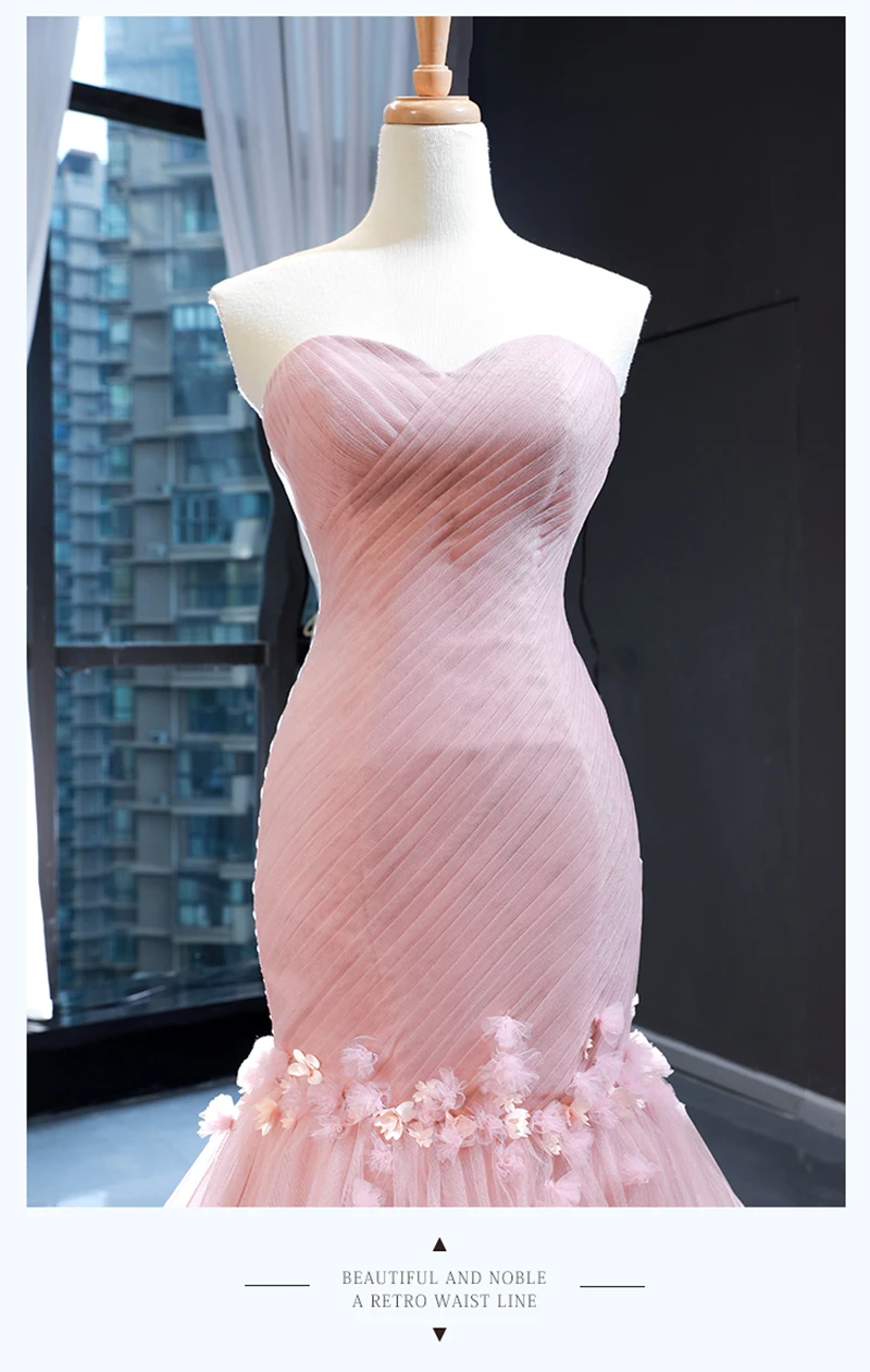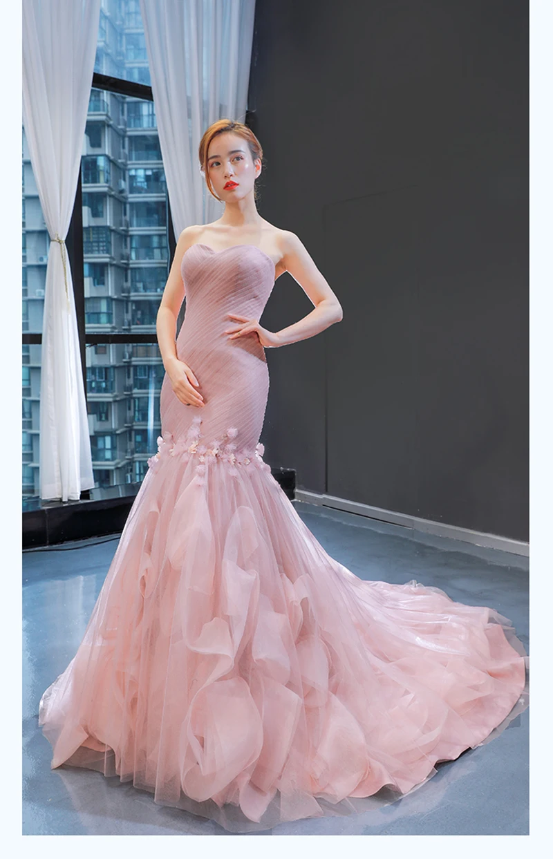 Женское вечернее платье с рюшами J66930, розовое вечернее платье без бретелек с оборками