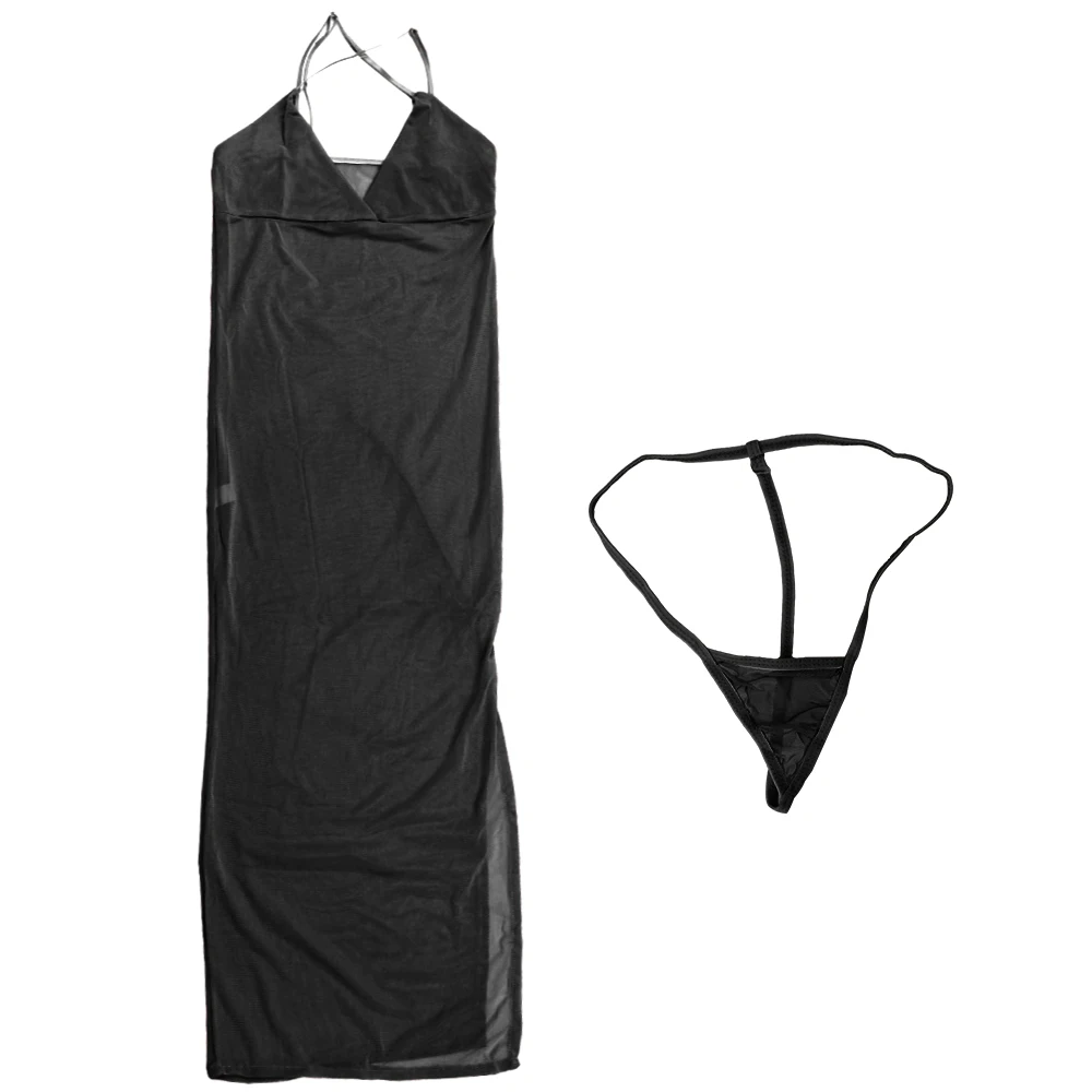 Эротическое нижнее белье прозрачное длинное платье на бретельках дамское с