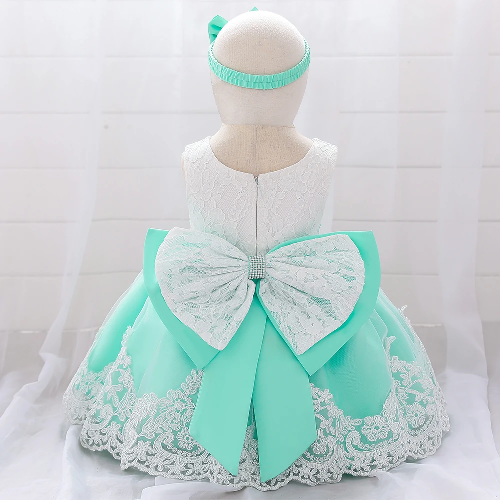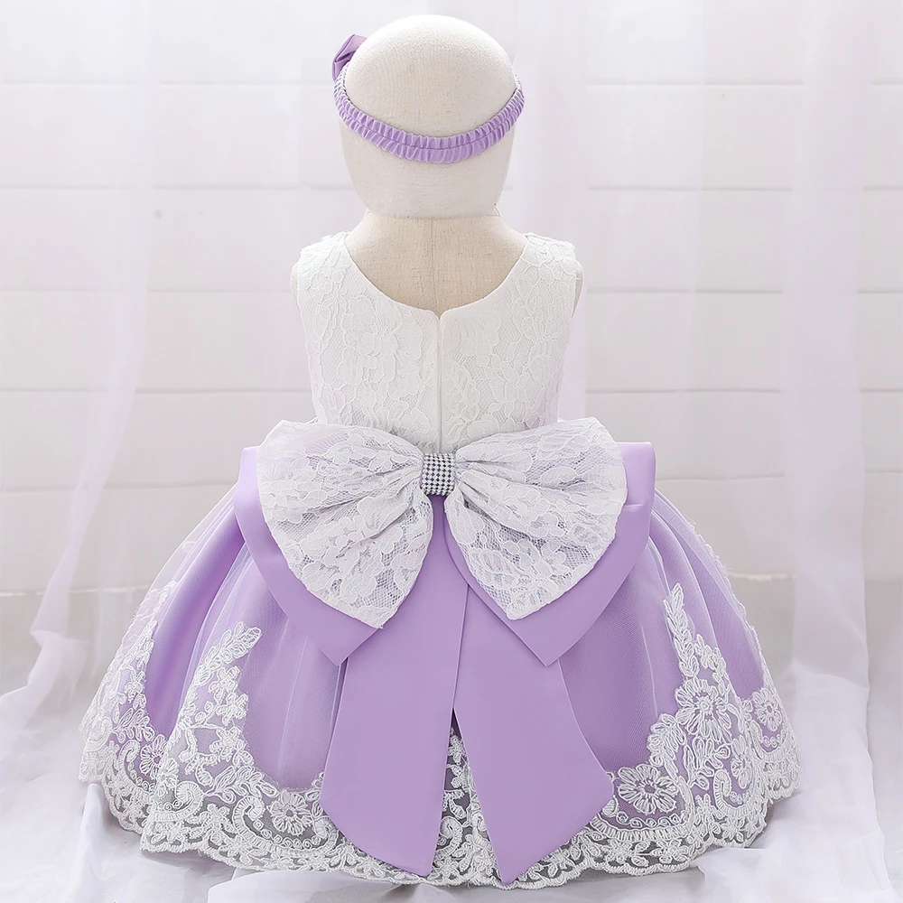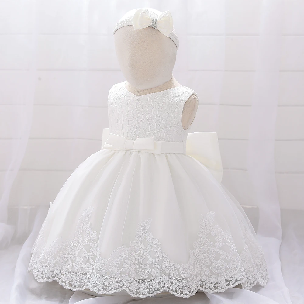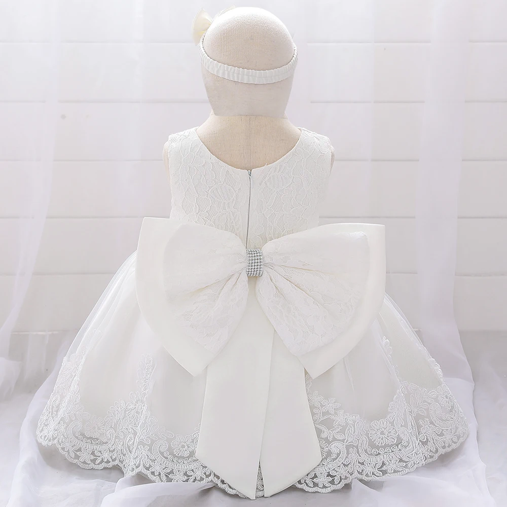 Детское кружевное платье с большим бантом, розовое платье для крещения для девочек 1 года, платье для дня рождения и свадьбы, лето 2019