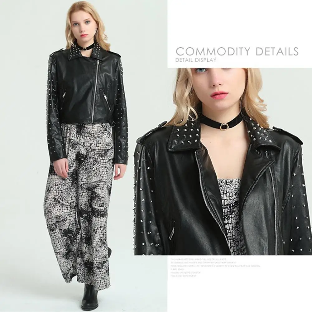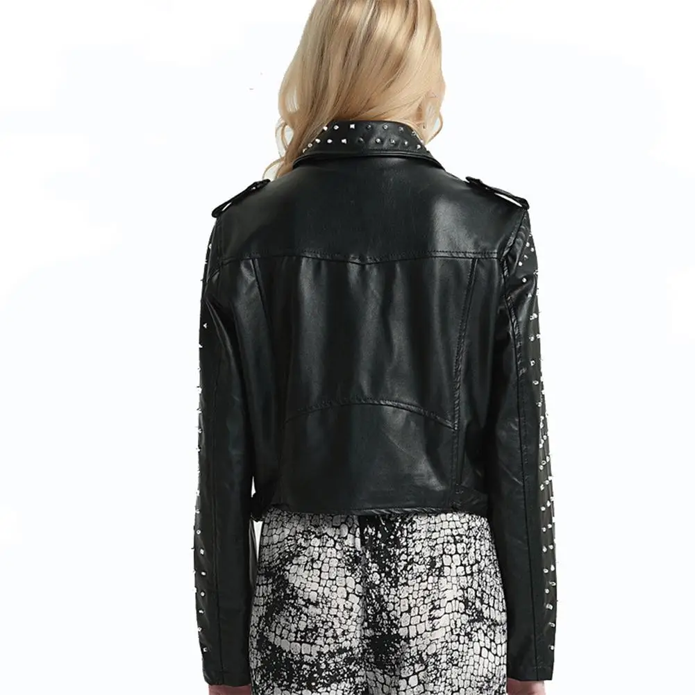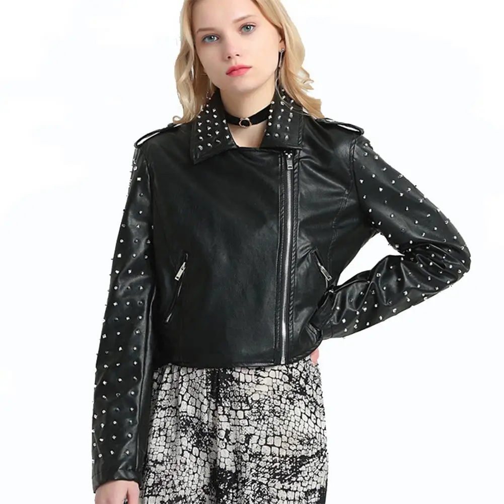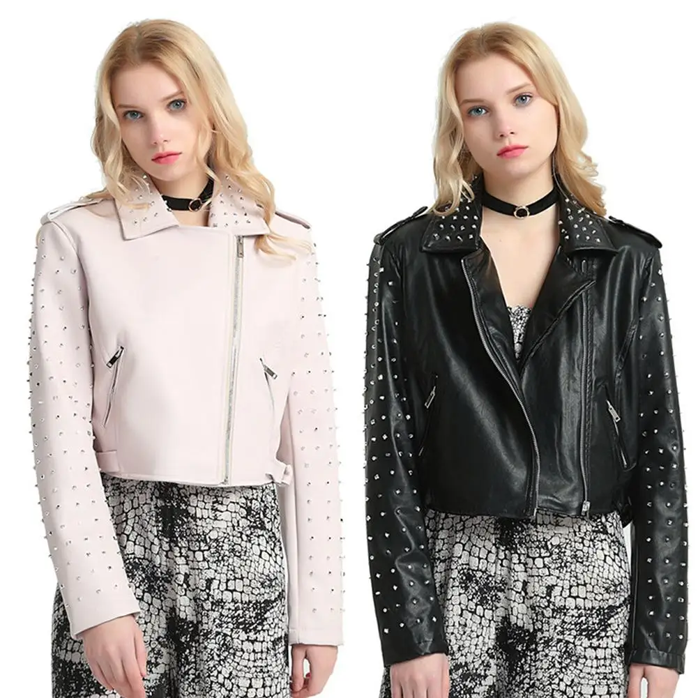 DSstyles, 1 шт., приталенная кожаная куртка в стиле панк, осенняя Женская куртка из искусственной кожи на молнии с бусинами для ногтей, узкие кожаные пальто с отворотом в стиле панк