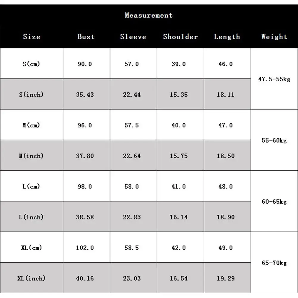 Размер: обхват груди, рукав, плечо, длина, вес;