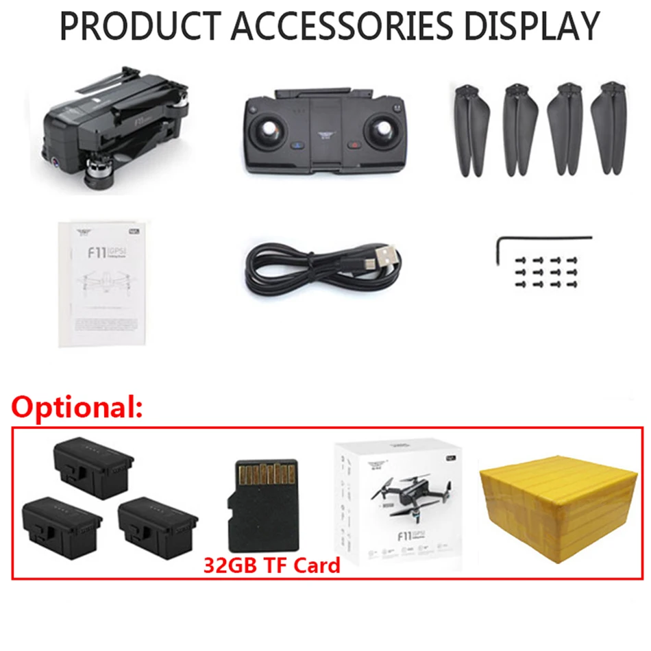 2. Первые 12 вариантов-Дрон F11, последние 10 вариантов-версия F11 PRO. F11-это версия камеры 1080P, и у нее есть небольшие линзы, F11 PRO-версия камеры 2K, а объектив biger-ниже! Пожалуйста, подтвердите это, прежде чем сделать заказ!