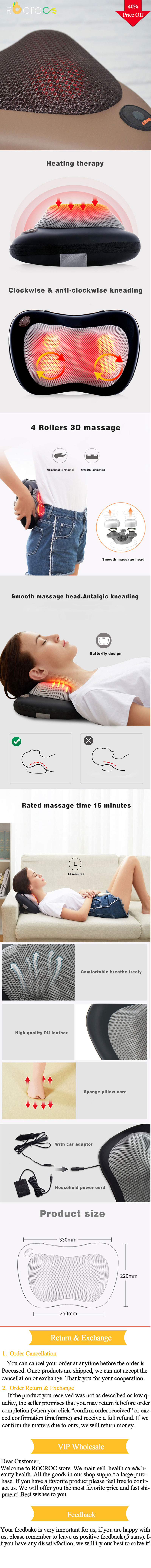 ROCROC, Электрический многофункциональный массажер для шеи, автомобильный домашний шейный шиацу, массаж спины, талии, ног, массажер для тела, подушка для релаксации