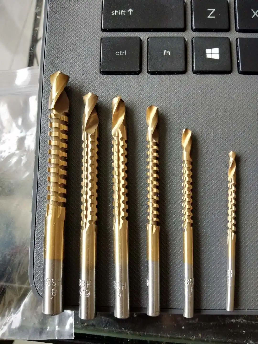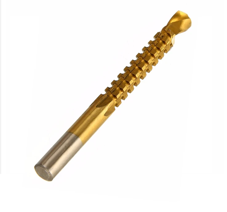 Titanium coating facilitates faster penetration with less effort. Suitable for use with sheet iron, aluminum, copper, wood, plastic etc.(Not for Steel) High hardness, high wear-resistance and high toughness. The one-in-all formation of grinding, precise size, long lifespan, durable..
