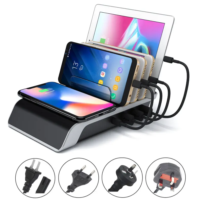 Особенности продукта:· Чистые и организованные-больше не загромоздкие кабели. Не нужно вставлять кучу зарядных устройств в розетку для каждого телефона и планшета. Эта Компактная Беспроводная зарядная станция держит все в одном месте-красиво, чисто и организованно. Он поставляется с 2 кабелями lightning для Apple, кабелем micro USB и кабелем USB-C для Android.· Работает с любым устройством-эта зарядная станция USB имеет Беспроводную зарядную панель Qi и 4 слота и 4 usb-порта, которые могут одновременно удерживать и заряжать до 4 устройств. Эта зарядная станция работает плавно с любым usb-устройством, таким как Apple iPhone, iPad и Android смартфоны, планшеты, камеры, eReaders, Bluetooth гарнитуры, динамики и многое другое.· Быстрая Беспроводная и умная зарядка-Эта беспроводная зарядная станция имеет порт доставки питания PD и 2 мощных порта быстрой зарядки 2.4A для энергоголодных устройств, таких как планшеты и большие смартфоны и обычный 1A порт. Usb-хаб может поставлять до 9000 ма со всех портов.· Безопасность и защита-резиновое основание этой док-станции для сотового телефона имеет хорошее сцепление для удержания всех устройств, предотвращающих выскальзывание. Каждый порт этой многозарядной док-станции распознает точные требования к напряжению подключенного устройства и соответствует выходному напряжению для безопасной и быстрой зарядки. Его Современная схема защищает от короткого замыкания, перенапряжения, перегрузки по току и перезарядки.· Гарантия & Гарантия возврата денег-вы получите бесплатную гарантию сроком 1 год и Гарантированный возврат средств в течение 30 дней с помощью AliExpress, таким образом, что ваша покупка 100% безопасным и защищенным с нами по любым вопросам.Характеристики:▶7,5 Вт QI Беспроводная зарядная станция: приносить вам один шаг ближе к будущему, беспроводная зарядная станция также имеет удивительные беспроводного зарядного устройства QI для устройств, в которых предусмотрена такая, как LG Nexus 7, samsung Galaxy S7, Sony XPERIA Z3V, Moto 360 смарт-часы и т. Д., Все, что вам нужно сделать, это оставить ваш QI интегрированный телефон на зарядной станции, никаких кабелей не требуется3 умных порта для зарядки USB IC: интеллектуальная Быстрая зарядка 3 устройства одновременно, с максимальным выходом 2,4 А/порт, позволяет заряжать iPhone, iPad и другие usb-устройства одновременноQi Беспроводная зарядка Поддерживаемые устройства:· Apple - iPhone 8, iPhone 8 Plus, iPhone X· Samsung - Galaxy S6, S6 Active, S6 Edge, S6 Edge Plus, S7, S7 Active, S7 Edge, S8, S8 Active, S8 Plus, S9, S9 Plus, Note 8, лидер 8, W2016· Nokia - Lumia 1520, Lumia 735, Lumia 830, Lumia 920, Lumia 928, Lumia 929 (Icon), Lumia 930, Nokia 6 (2018), Nokia 8 Sirocco· Google - Nexus 4, Nexus 5, Nexus 6· Sony - Xperia Z3V, Xperia XZ2, Xperia XZ2 Premium LG - G2, G3, G6, G6 Plus, G7, G7 ThinQ, Lucid 2, Lucid 3, Optimus F5, optimus G Pro, Optimus It L-05E, Spectrum 2, Vu 2, Vu 3, V30, V30 Plus· Motorola - Droid Maxx, Droid Mini, Droid Turbo, Droid Turbo 2, Moto Maxx, Moto X Force· Microsoft - Lumia 950, Lumia 950 XL· HTC - Droid DNA, Windows Phone 8X· BlackBerry - Passport, PRIV, Z30· Другие-Asus PadFone S, HP Elite X3, Xiaomi Mi MIX 2S и многое другое.Беспроводное зарядное устройство Qi:7,5 Вт солнечной зарядки Модель: 7,5 Вт Беспроводное зарядное устройство для iPhone X/iPhone 8/ iPhone 8 plus5 вт стандартная модель:Совместимость со всеми устройствами с поддержкой Qi5 Вт Беспроводное зарядное устройство для Samsung Galaxy S9,S9 Plus, Note8, S8, S8 Plus, 5 Вт Беспроводное зарядное устройство для Samsung S7, S7 Edge, Note 5, S6 Edge Plus5 Вт Беспроводное зарядное устройство для Samsung S6, S6 Edge5 Вт Беспроводное зарядное устройство для iPhone X, iPhone 8, iPhone 8 Plus5 Вт Беспроводное зарядное устройство для Google Nexus 6 / 4 / 5/ 7Характеристики:Цве