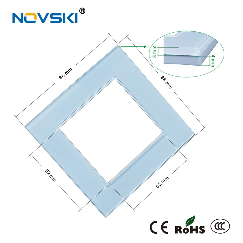 Эта панель гнезда переключателя/Лицевая панель подходит для большинства переключателей и розеток размера 86*86 мм и внутреннего размера 52*52 мм. Заменяя этот аксессуар, он обновит или обновит Ваш внешний вид розетки, легко протирает пыль или масло, которое находится на поверхности. Это также идеальное решение для огнестойких целей вашей домашней посуды. Посылка включает в себя: 1 шт закаленное стекло панель как один блок