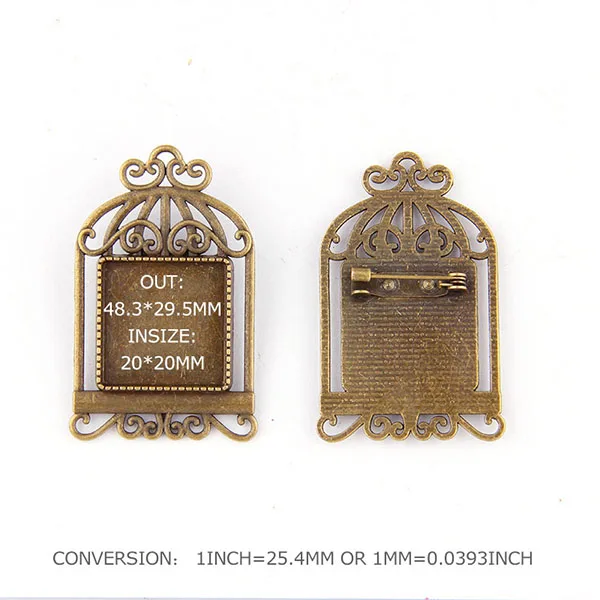 30*30 мм 2 шт внутренний размер яркая Античная бронзовая клетка для птиц из сплава брошь пустая выпуклая круглая основа рельефный набор амулет брошь