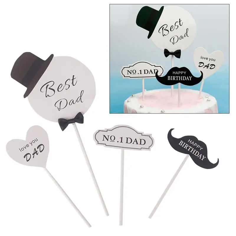 Эта вещь разработана специально для украшения для тортов. Он изготовлен в шикарных формах с теплыми словами. И поможет вам создать красивый торт живописный. Он также может быть использован в качестве забавных меток для закусок, фруктов, вечерние палочки для еды, кексов и т. д. подходит для Дня отца, вечерние, день рождения и т. д.
