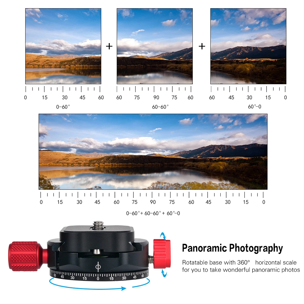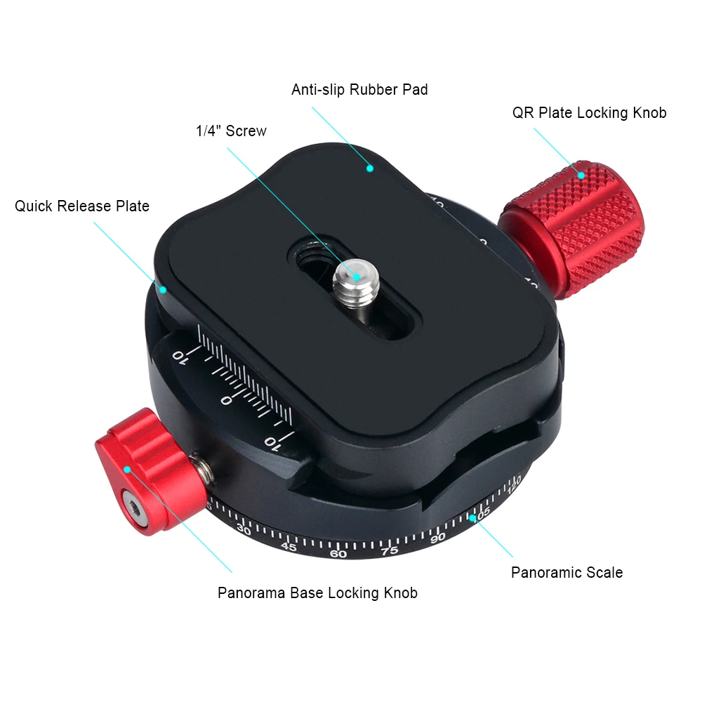Зажим для панорамной головки штатива из алюминиевого сплава, прецизионная обработка и обработка поверхности с чпу принимает обработку анода против окисления.