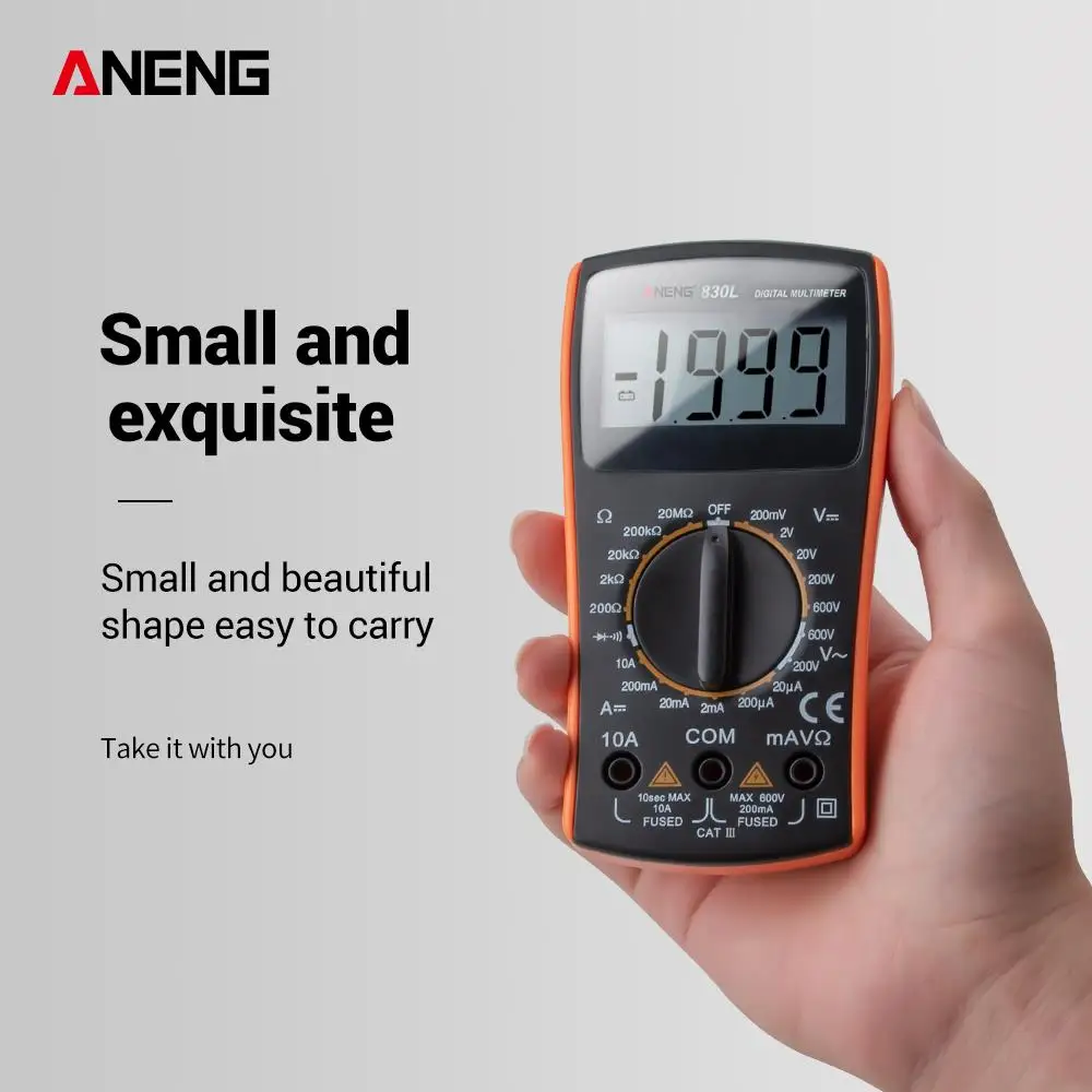 ANENG 830L мини пальмовый Цифровой мультиметр 2000 Counsts ручной диапазон сопротивления напряжения студентам использовать мини мультиметровая цифра